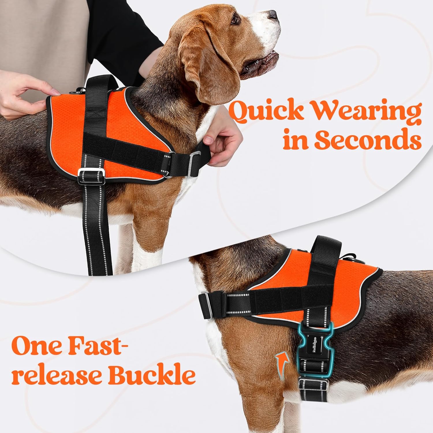 • Quick & Hassle-Free Wear: Get your pup ready in seconds! Slide the harness over their head, click the buckle, and you're ready! This effortless design makes everyday walks, runs, or hikes a breeze—perfect for busy pet parents looking for a simple yet reliable solution.
