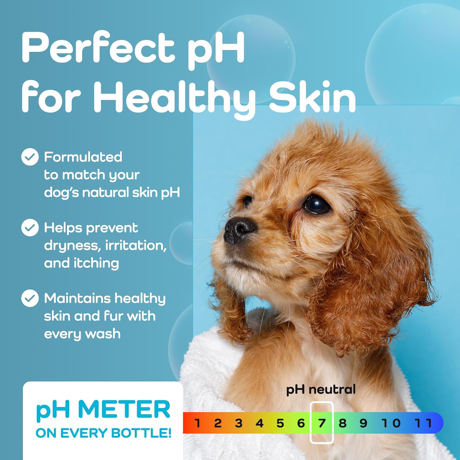 • pH-Balanced for Skin Health – Featuring a built-in pH meter right on the bottle, this shampoo for dogs ensures every wash is balanced for skin wellness. Proper pH supports the natural skin barrier and makes this a trusted choice for itchy dog shampoo needs and long-term coat care.
