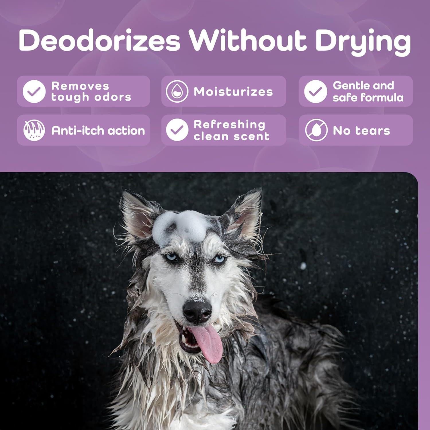 • Enhanced Coat Support – Developed to nourish and reinforce your dog’s coat with aloe vera, argan oil, chamomile, and grape extract, this hydrating dog shampoo supports thick and short fur alike. Regular use leaves coats noticeably softer, shinier, and smelling fresh—perfect for dogs with double coats, such as Siberian Huskies, Labrador Retrievers, Golden Retrivers, German Shepherds, and Pembroke Welsh Corgis.