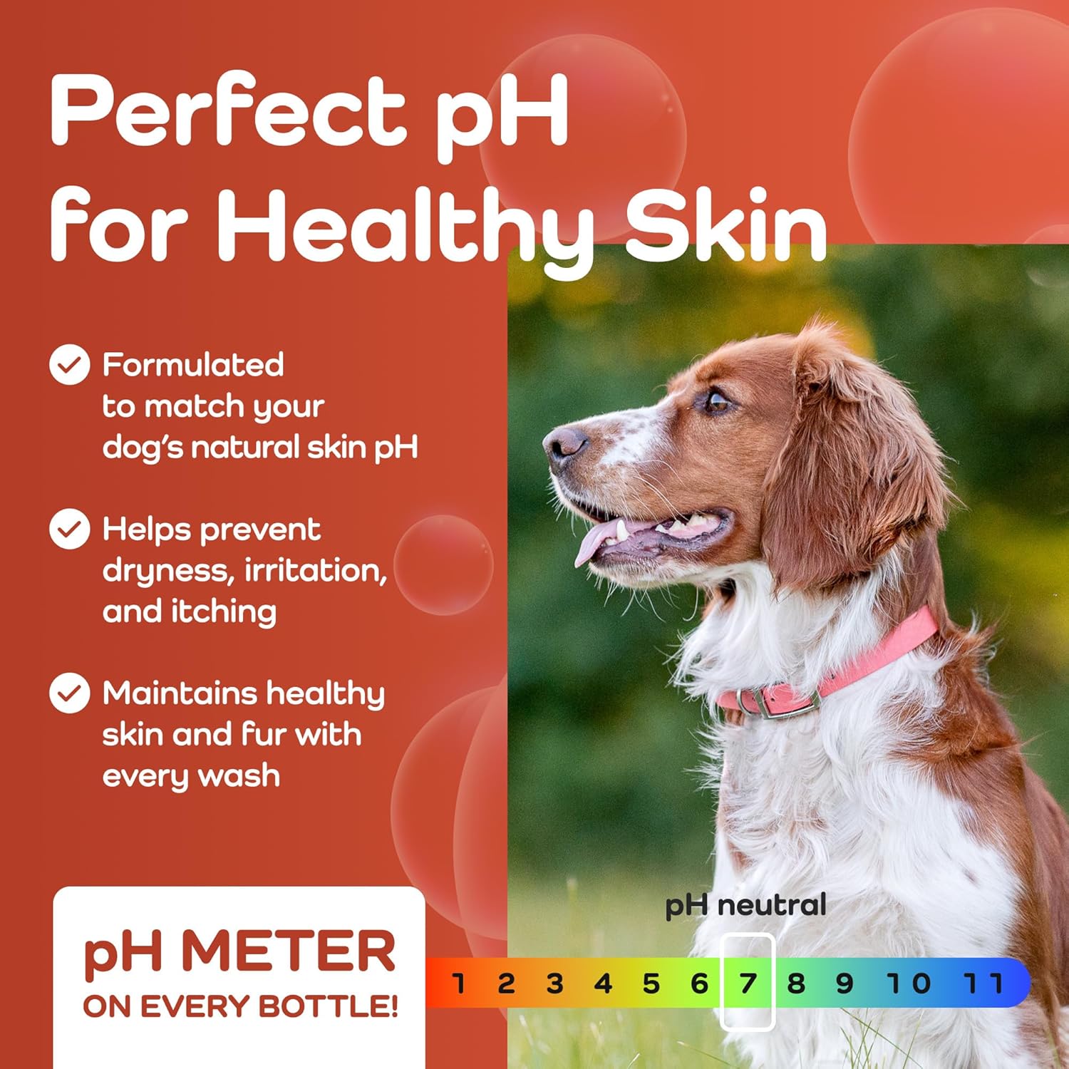 • pH-Balanced for Skin Health – Featuring a built-in pH meter right on the bottle, this shampoo for dogs ensures every wash is balanced for skin wellness. Proper pH supports the natural skin barrier and makes this a trusted choice for itchy dog shampoo needs and long-term coat care.