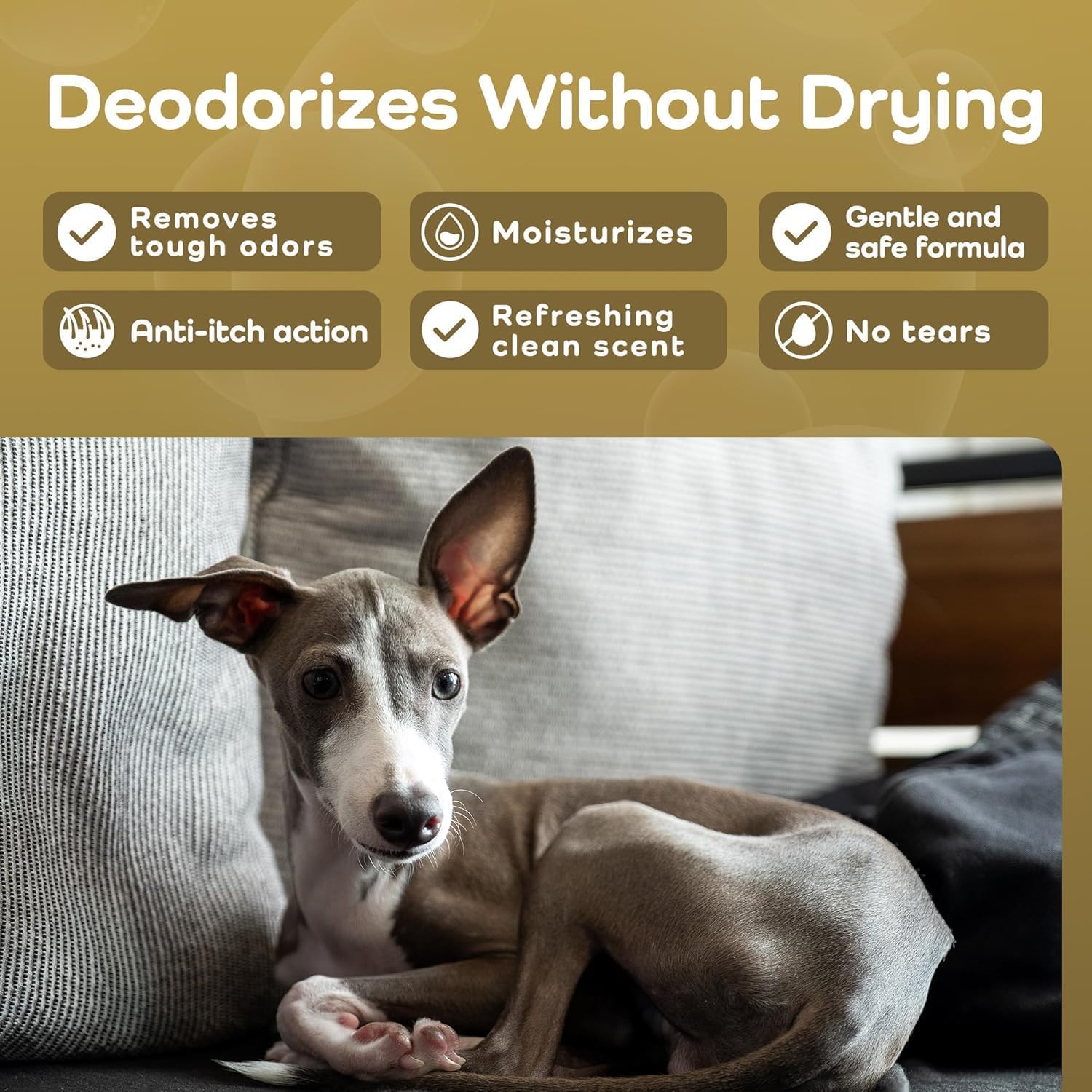 • Enhanced Coat Support – Developed to nourish and reinforce your dog’s coat with aloe vera, argan oil, chamomile, and grape extract, this hydrating dog shampoo supports thick and short fur alike. Regular use leaves coats noticeably softer, shinier, and smelling fresh—perfect for dogs with thin, sensitive skin and short hair, such as Greyhounds, Whippets, Basenjis, Dobermans, Vizslas, Pharaoh Hounds, Manchester Terriers, and more.
