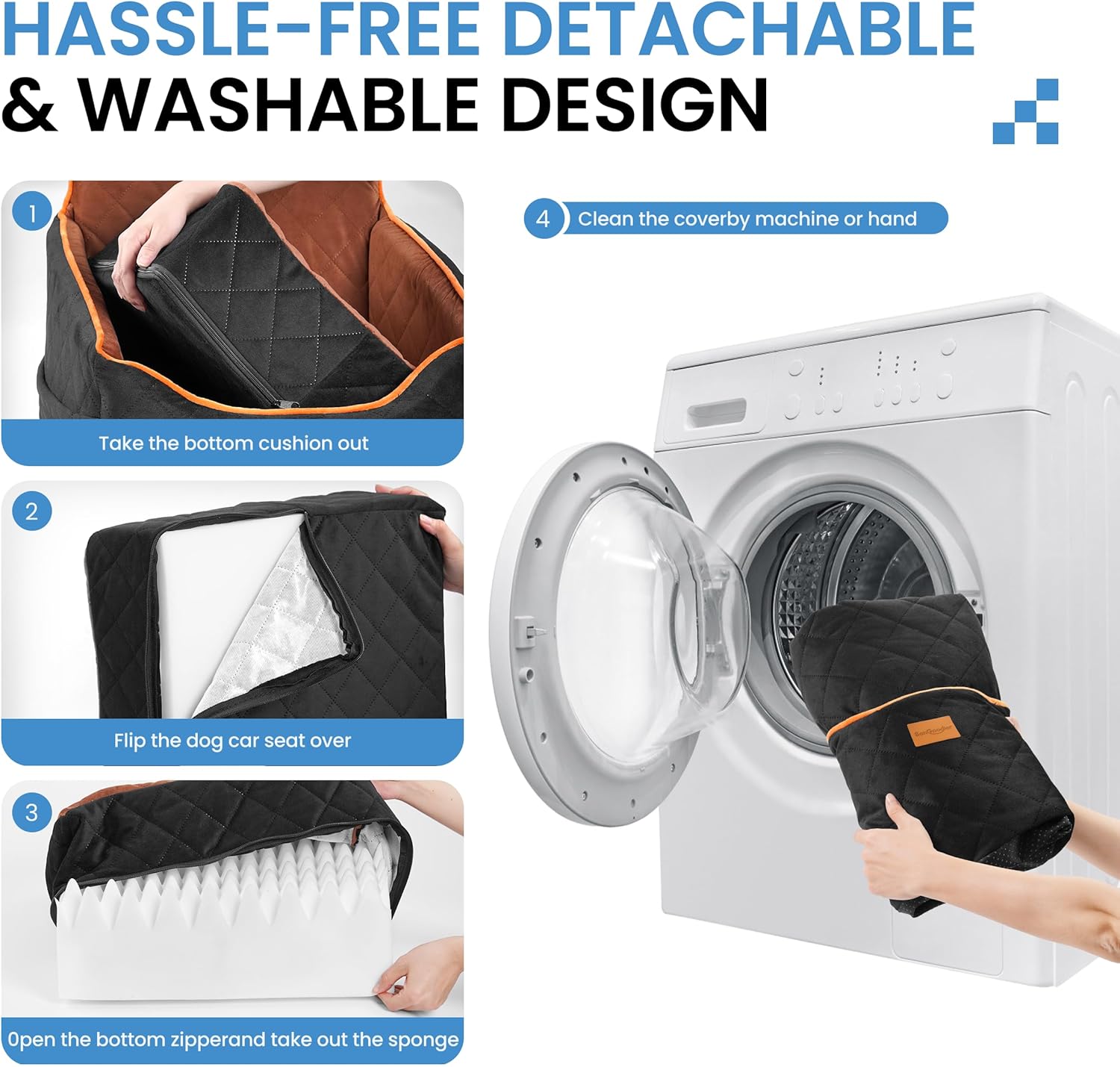 • Soft & Durable Car Bed: This dog car seat doubles as a car bed, making it ideal for naps on the go. The thick padding and ergonomic shape offer superior comfort for small and medium-sized dogs.