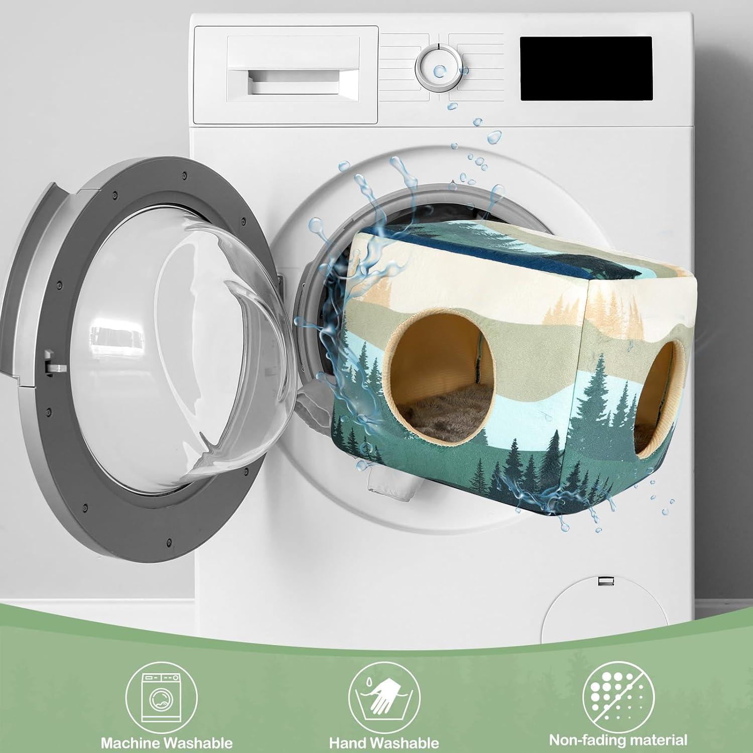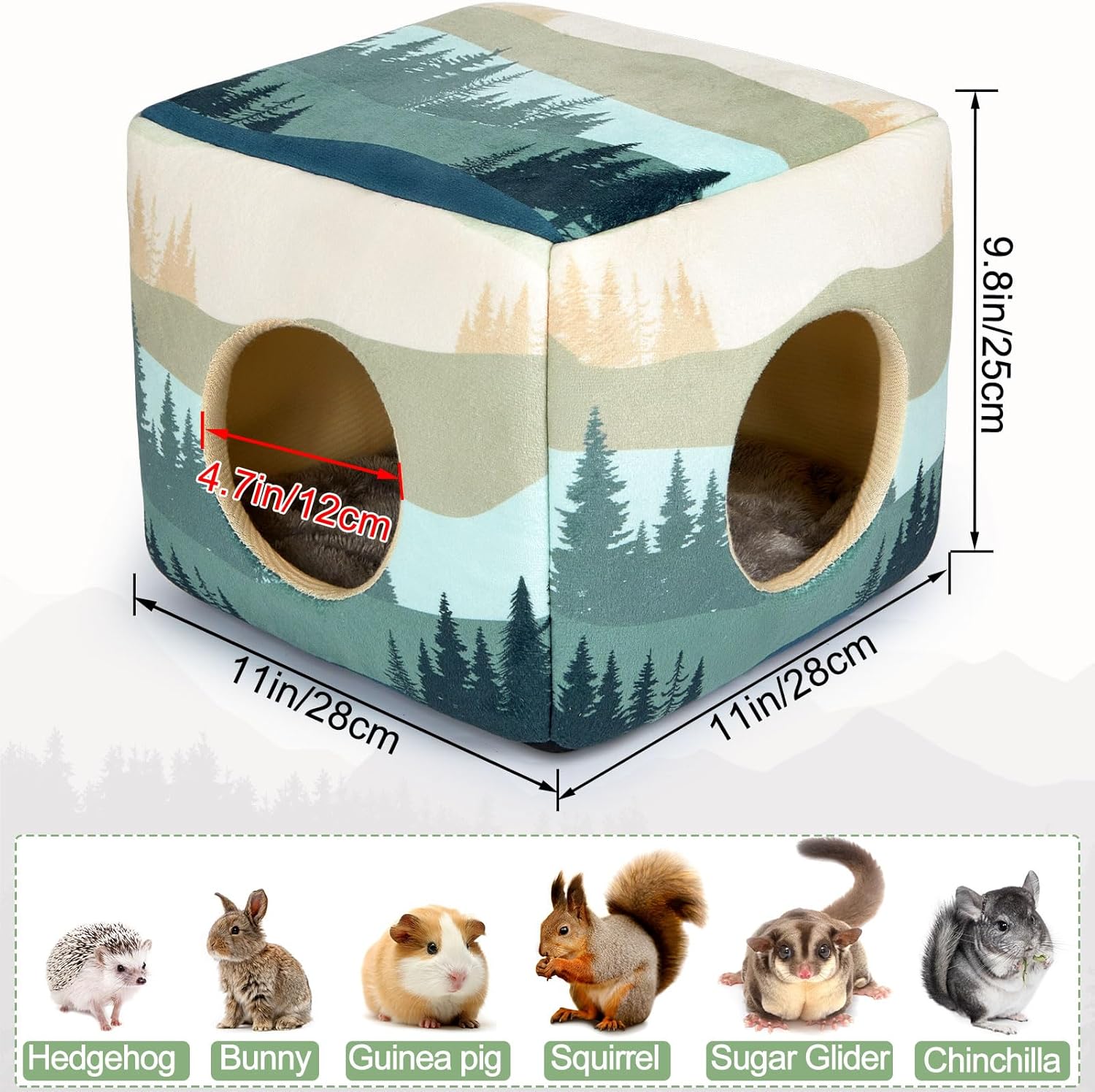 Bienbee Guinea Pig Hideout, Washable Guinea Pigs House Cozy Guinea Pigs Bed for Small Pet Bunny/Rabbit/Hamster/Chinchilla Guinea Pig Accessories Forest Landscape