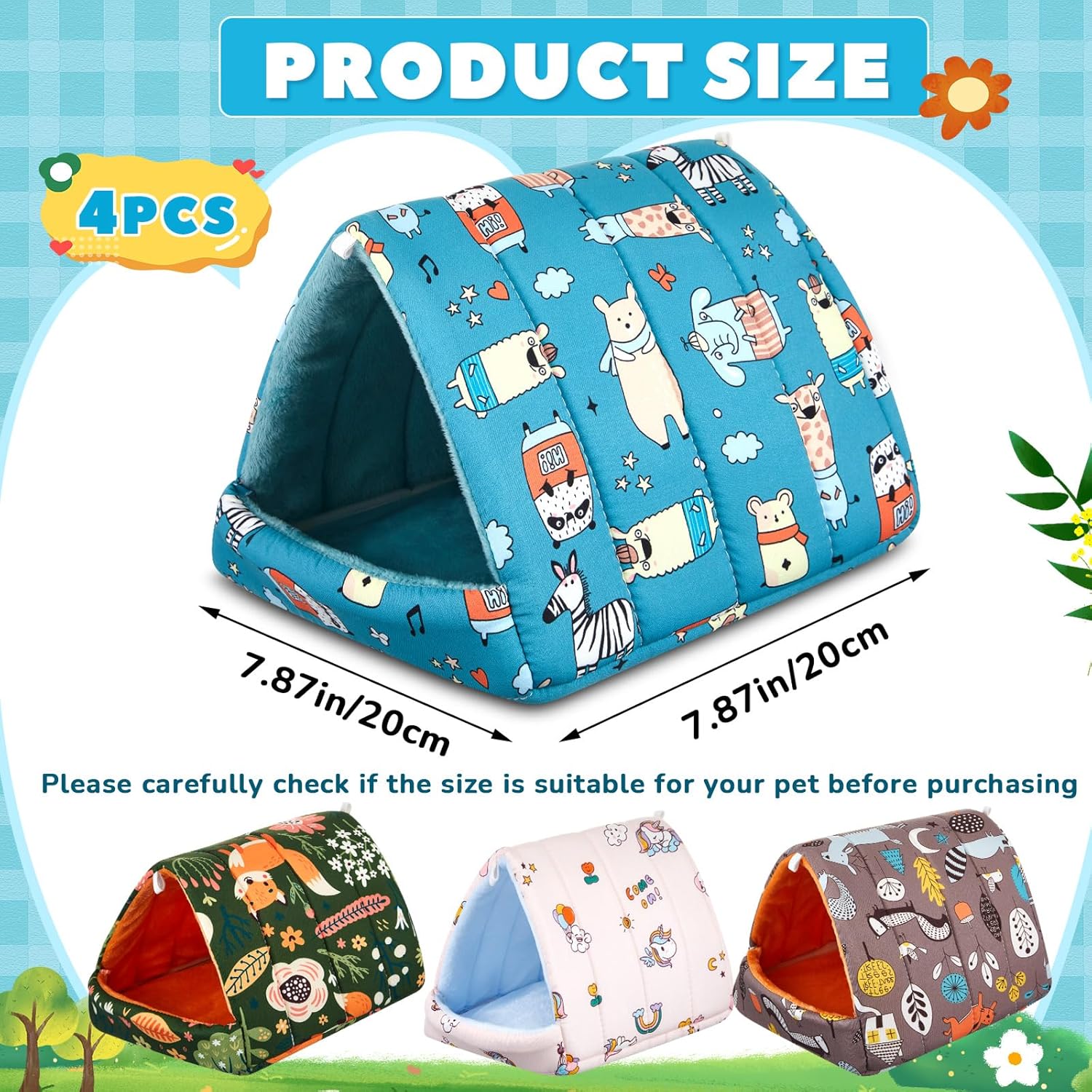 • Stylish and Multi Pattern Comfort Shelters: experience the joy of providing your guinea pigs with a safe and comfortable home; With our 4-piece set of multi-patterned, bright, and beautiful shelters, you can ensure a cozy environment for your pet while adding a splash of color to their living space; These shelters allow for seamless changeovers, making them the good choice for long-term needs and replacements