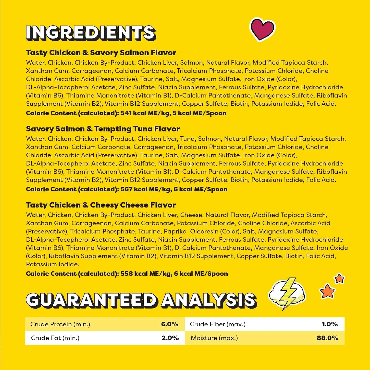 • Irresistible Cat Treats: Made with real chicken, tuna, salmon or cheese so your favorite feline will enjoy two irresistible flavors in one lickable cat puree spoon