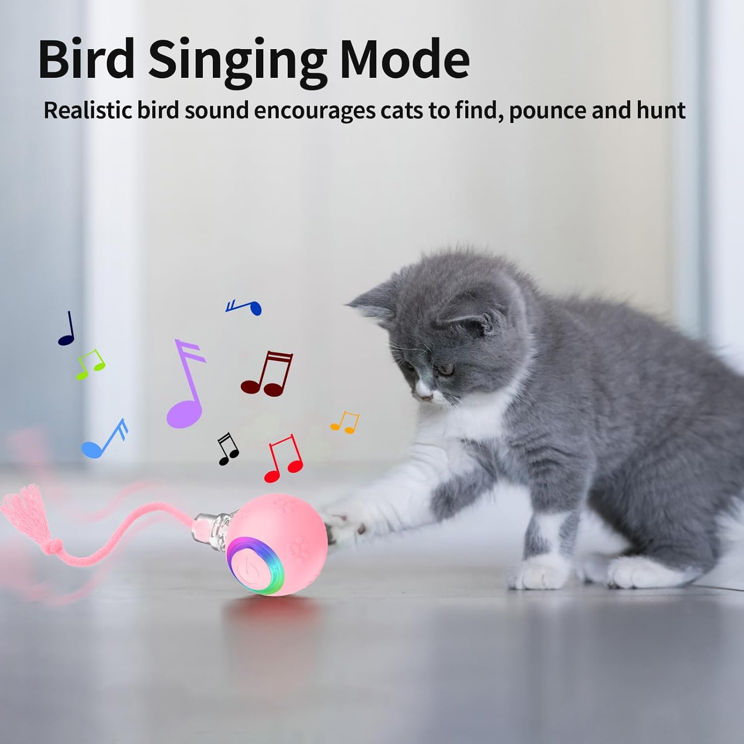 Interactive Cat Toys, Automatic Moving Cat Toys for Bored Indoor Adult Cats, Fast Rolling, Chirping & Motion-Activated Kitty Toys, Fun Gift for Cats with Speedy Tail 2.0, USB Rechargeable,Pink