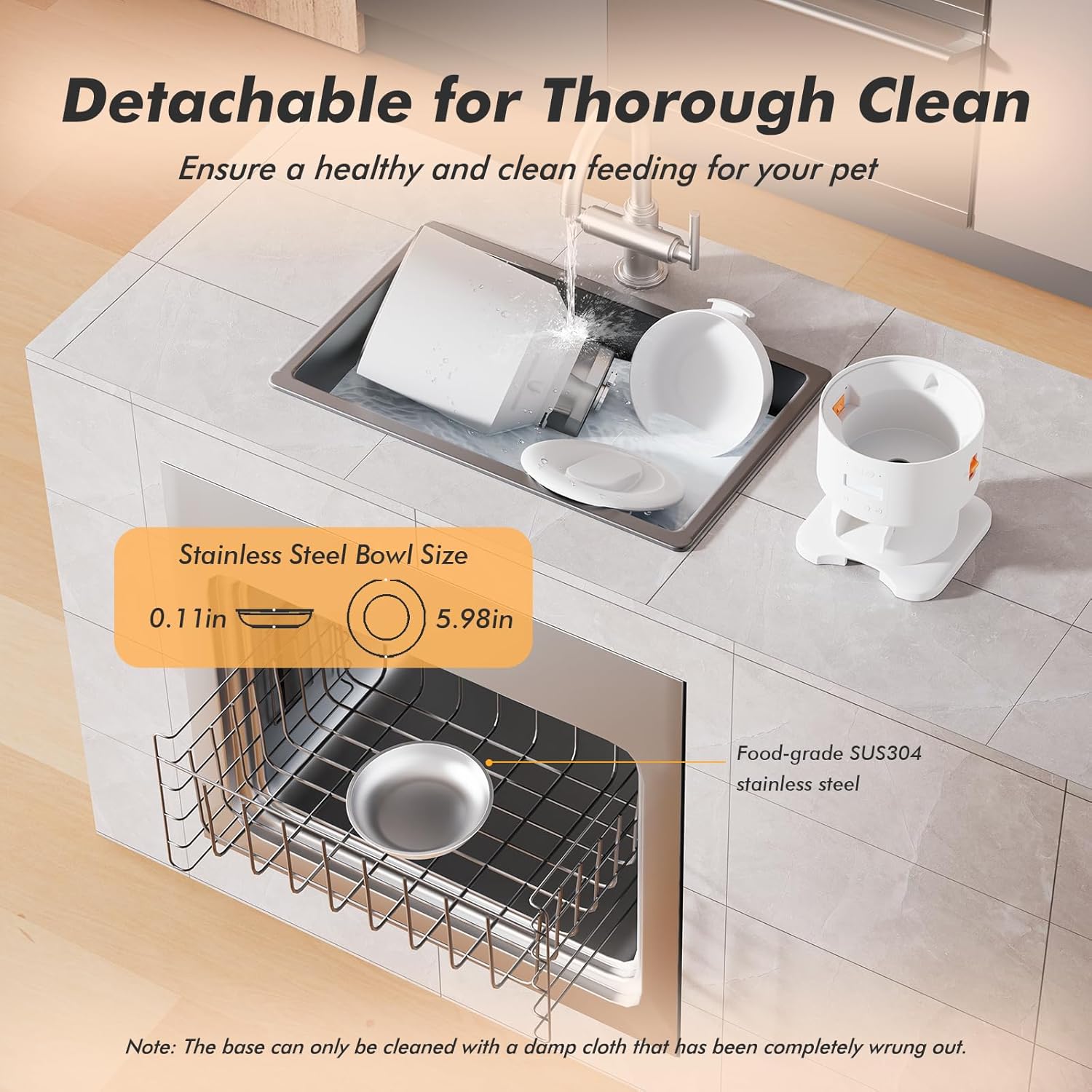 - Thorough Cleaning: Our automatic dog feeder comes with fully removable parts for effortless cleaning, including the lid, food hopper, stainless steel bowl and food dispenser rotor. Unlike other cat feeder automatic with open-bottom food hopper that can spill kibble crumbs everywhere during disassembly, our thoughtfully designed food hopper keeps kibble contained, minimizing mess during cleanup. Plus, the hopper can be detached without disconnecting anything, making it easy to carry for refilling