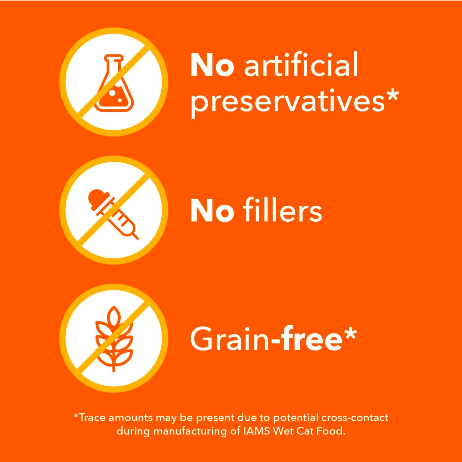 • Quality Recipe: IAMS grain-free (Trace amounts may be present due to cross-contact during manufacturing) wet cat food recipes are made with wholesome ingredients