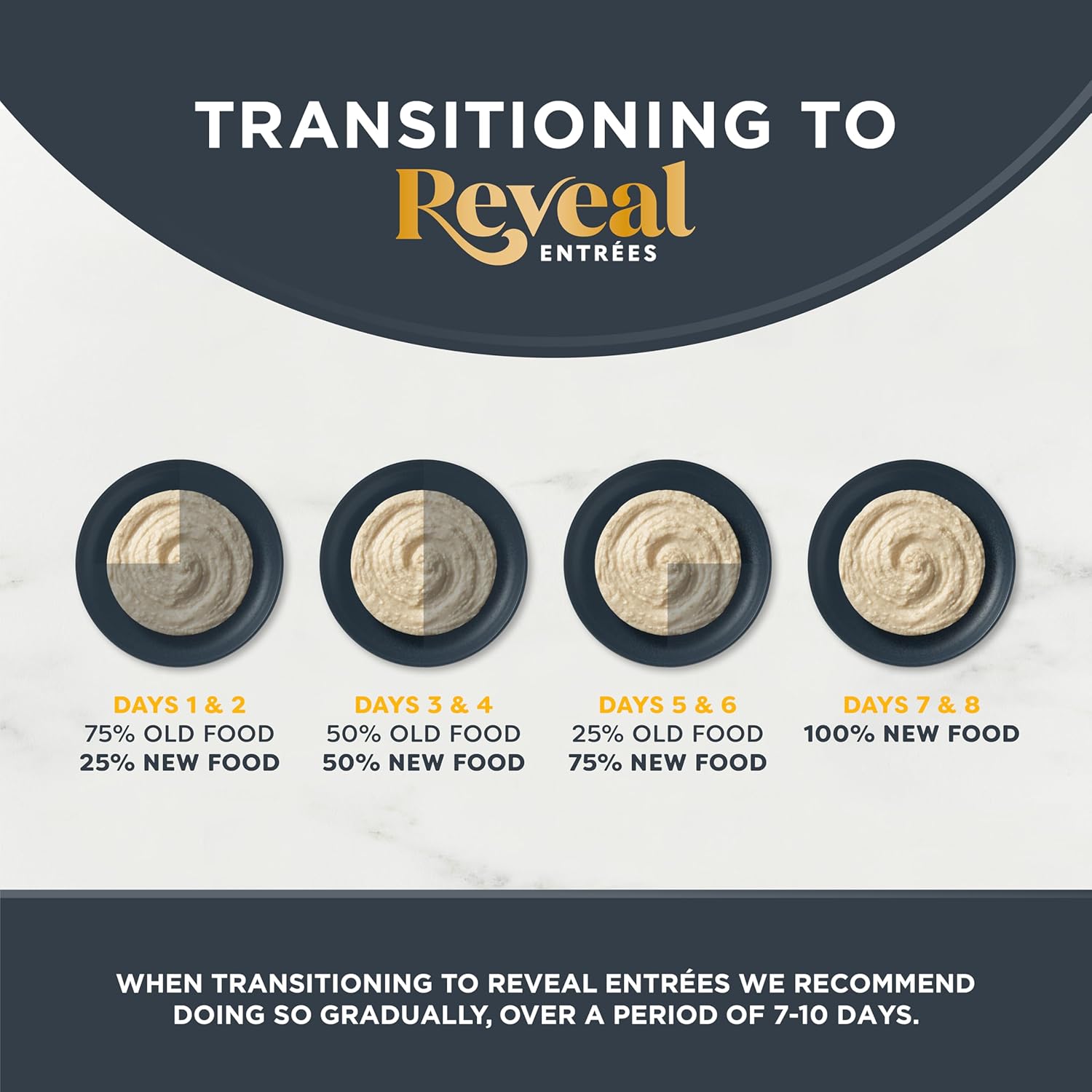 • No Artificial Colors, Flavors, or Preservatives: Made with natural ingredients with added vitamins and minerals, Reveal Entrées is free from unnecessary additives providing a delicious balanced meal that is sure to make mealtime the highlight of your cats day. As with any new food, we recommend introducing Reveal Entrees gradually to make the change easier on your cat’s digestion.