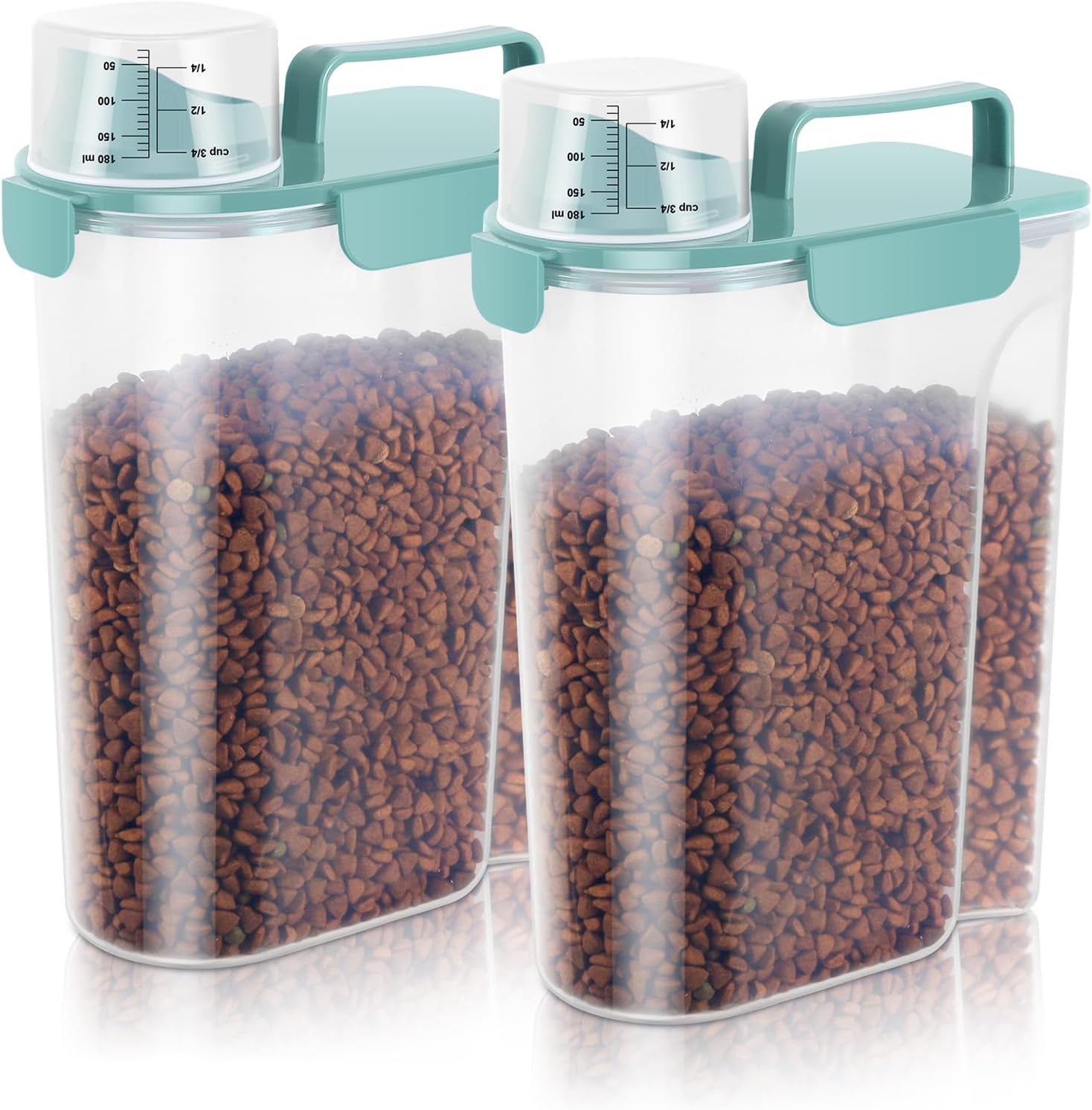 • WHAT YOU GET ? The dog food storage container comes with a 1-pack airtight pet food storage container with a clear measuring cup and an upgraded large spout for easy pouring of pet food at any time. This dog food storage containers can be a gift The perfect gift for any home.