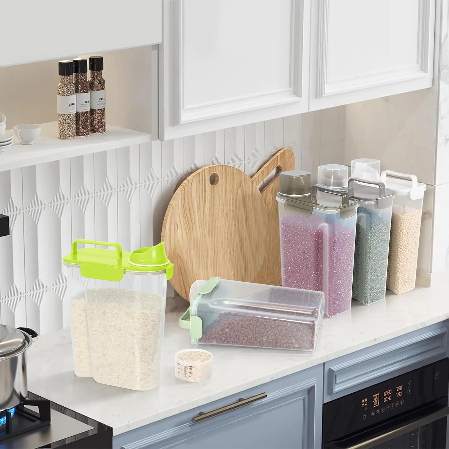 5-7Lbs Cat Dog Storage Container, Portable Pet Food Containers with Upgraded Large Spout and Cup, Small Animal Kibble Dispenser for Bird Seed, Oatmeal, Rice, Flour (2, Bright Green, 5L)