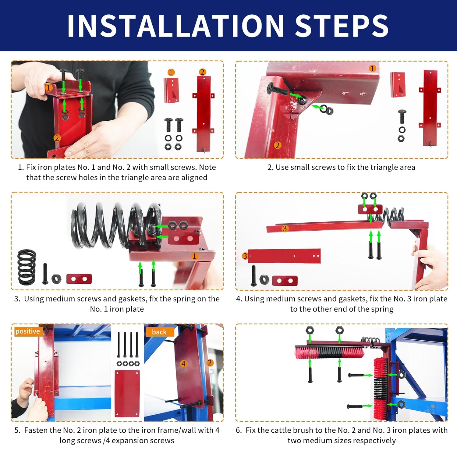 • Easy to Install: With the included screws and nuts, these livestock scratching brushes can be easily installed on stumps, fence posts, and other suitable places to prevent livestock from rubbing against valuable fences, equipment, or buildings.