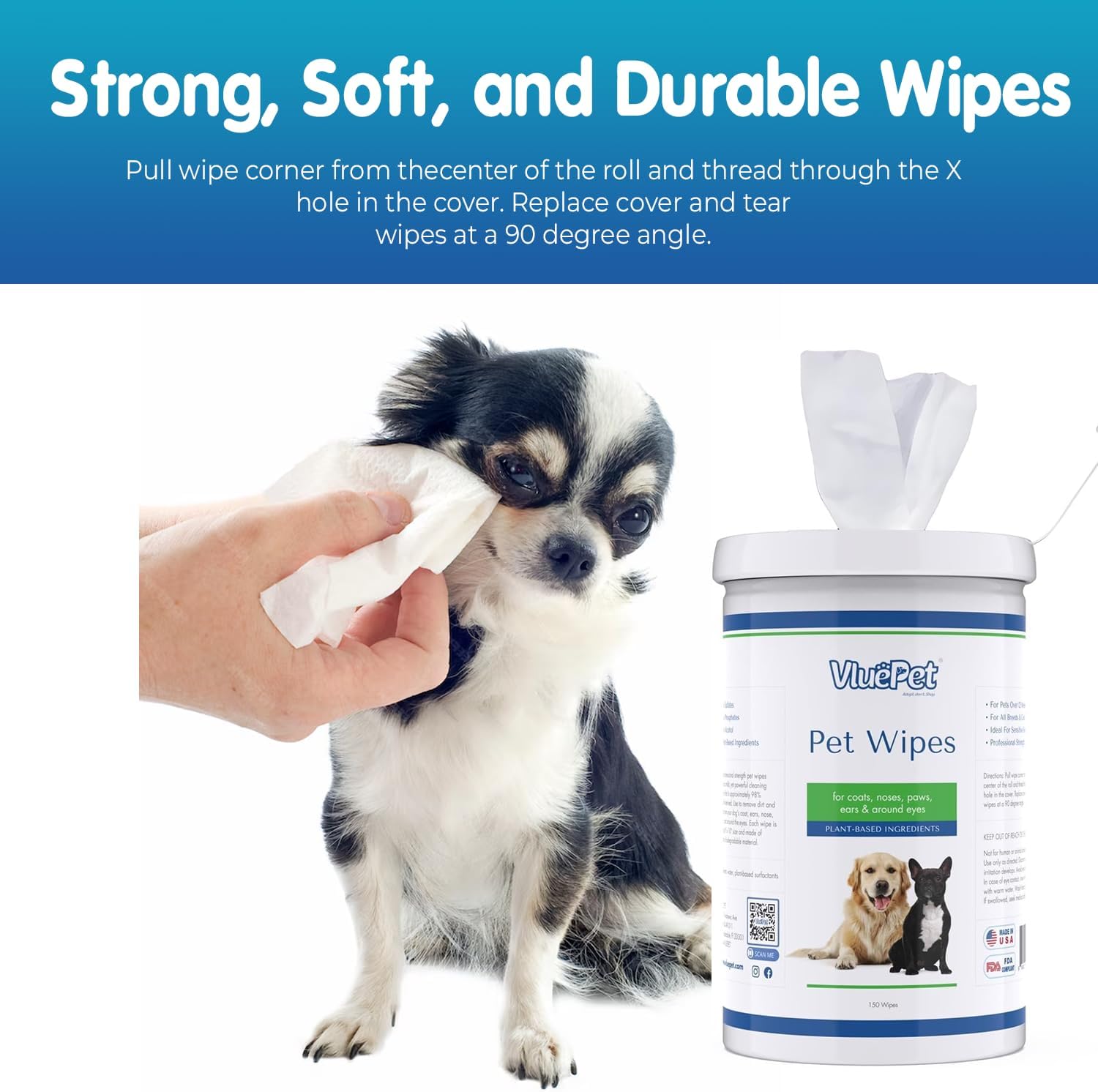 VLUEPET - Pet Wipes for Dogs & Cats | Biodegradable, Natural & Unscented Grooming Wipes for Paws, Coat, Ears, Eyes & Rear | Soft, Durable & Safe for Daily Cleaning, Fragrance-Free | 150 Count