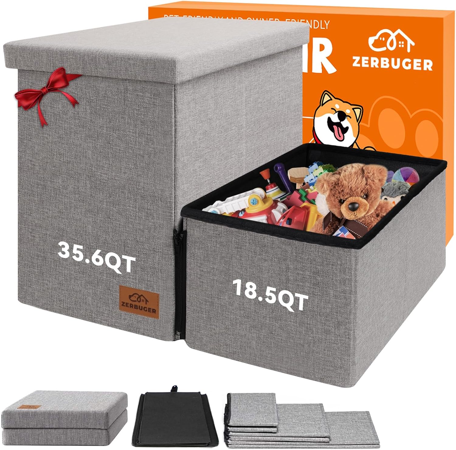 • 2-IN-1 DOG STAIRS WITH STORAGE: Zerbuger pet stairs not only provide a stable and cozy stair for your pet to climb, but also serve as a convenient large storage area total of 54QT for your pet's clothes, toys, or any other supplies. Our pet steps are covered with removable lids, Every steps are designed as storage boxes.