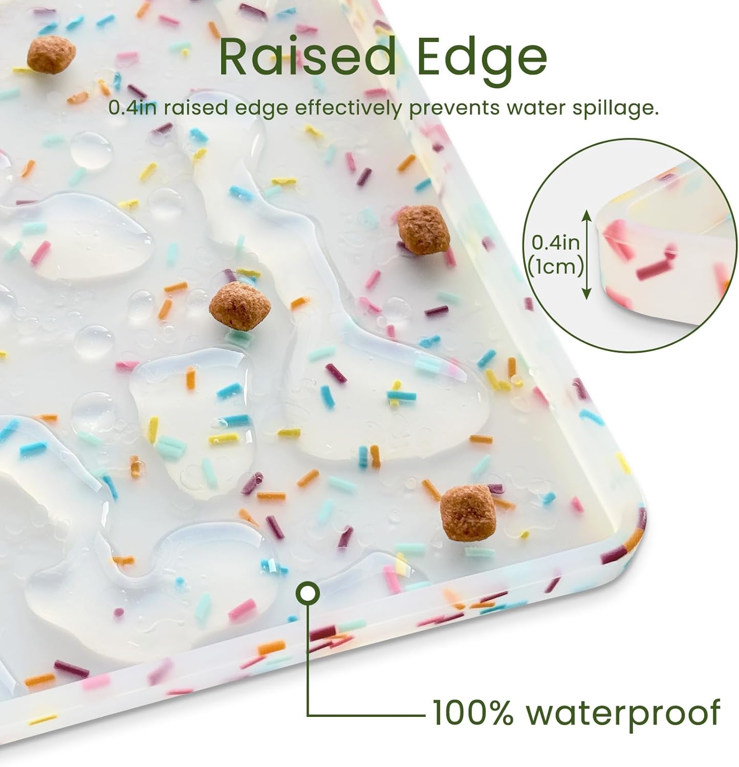 • Versatile Usage: This extra-large dog feeder mat accommodates various types of bowls and pet supplies - mats under dog food and water bowls, cat fountain, feeder stations and litter boxes for messy proof. Pet placemats are suitable for all breeds of cats, dogs, puppies and other animals.