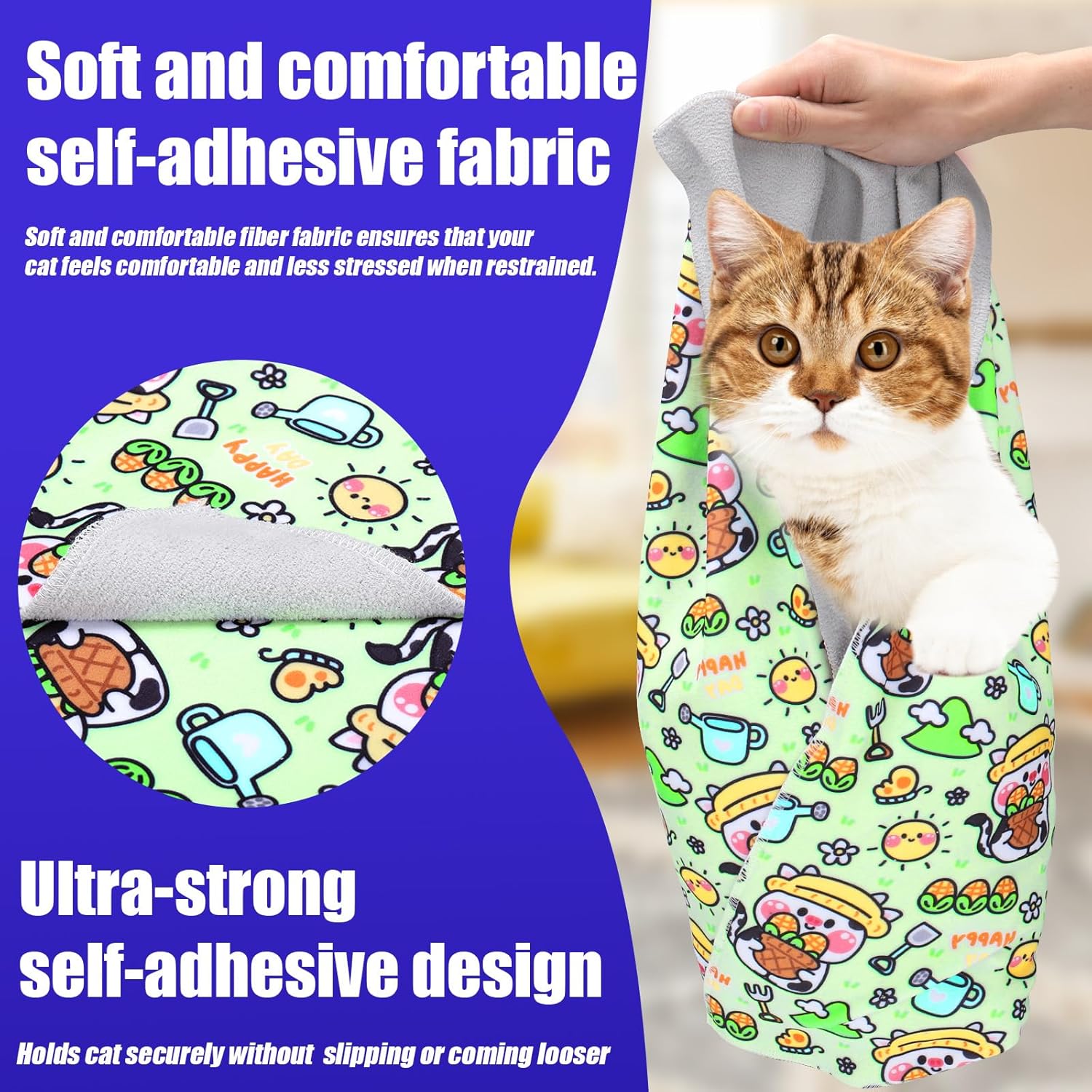• STURDY & DURABILITY, NOT EASY TO FALL OFF: The cat wrap for cutting nails is made of self-adhesive polymer material, the new high-quality self-adhesive design can be tightly adhered to the cat's body to prevent the cat from breaking free, the fine fiber material is not easy to be bitten and scratched, and it is stronger and more durability compared to other cat bags and kitty pouches.