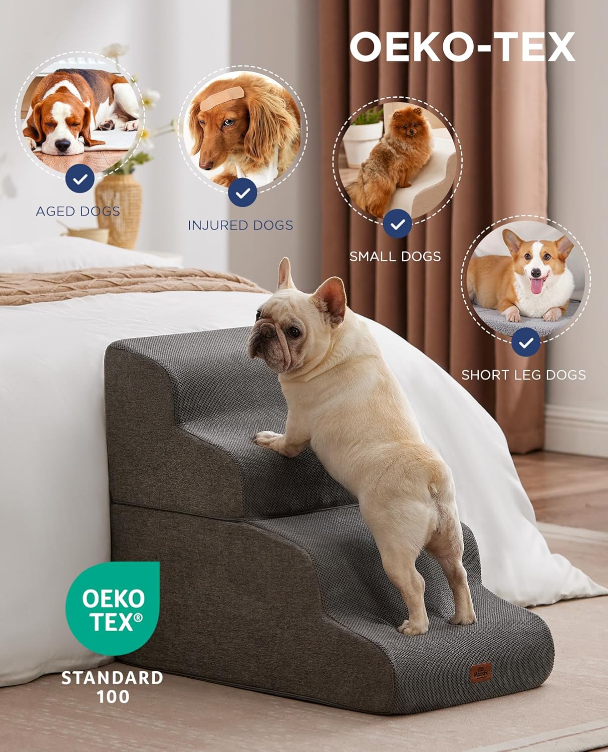 • MULTIPLE STEP SIZES - This dog stair has 3 steps, 4 steps and 5 steps to choose. Our 3-step stairs fits for chair/sofa/bed up to 17inch. 4-step stairs fits for chair/sofa/bed up to 23inch. And 5-step stairs fits for chair/sofa/bed up to 29inch.