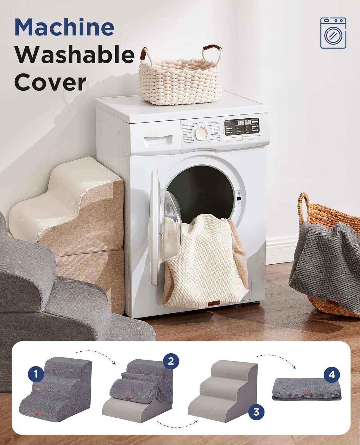 • MULTIPLE STEP SIZES - This dog stair has 3 steps, 4 steps and 5 steps to choose. Our 3-step stairs fits for chair/sofa/bed up to 17inch. 4-step stairs fits for chair/sofa/bed up to 23inch. And 5-step stairs fits for chair/sofa/bed up to 29inch.
