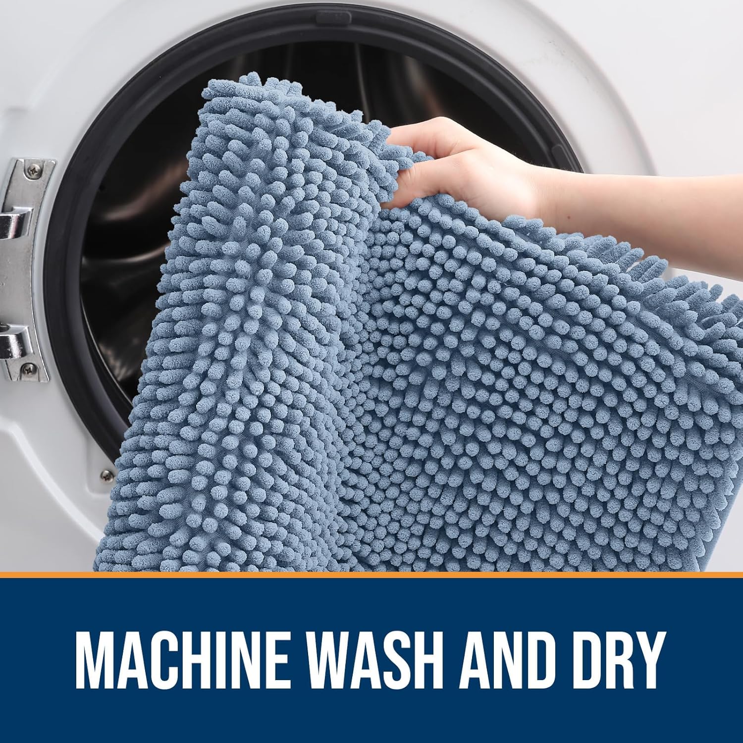 OLANLY Dog Door Mat for Muddy Paws 30x20, Absorbs Moisture and Dirt, Absorbent Non-Slip Washable Doormat, Quick Dry Chenille Mud Mat for Dogs, Entry Indoor Entryway Carpet for Inside Floor, Airy Blue