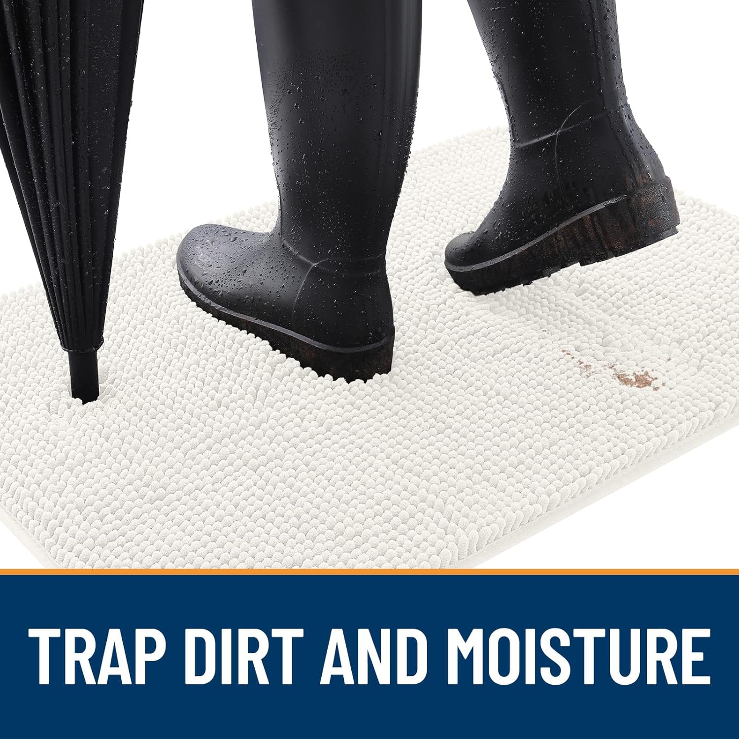OLANLY Dog Door Mat for Muddy Paws 59x24, Absorbs Moisture and Dirt, Absorbent Non-Slip Washable Doormat, Quick Dry Chenille Mud Mat for Dogs, Entry Indoor Entryway Carpet for Inside Floor, Ivory