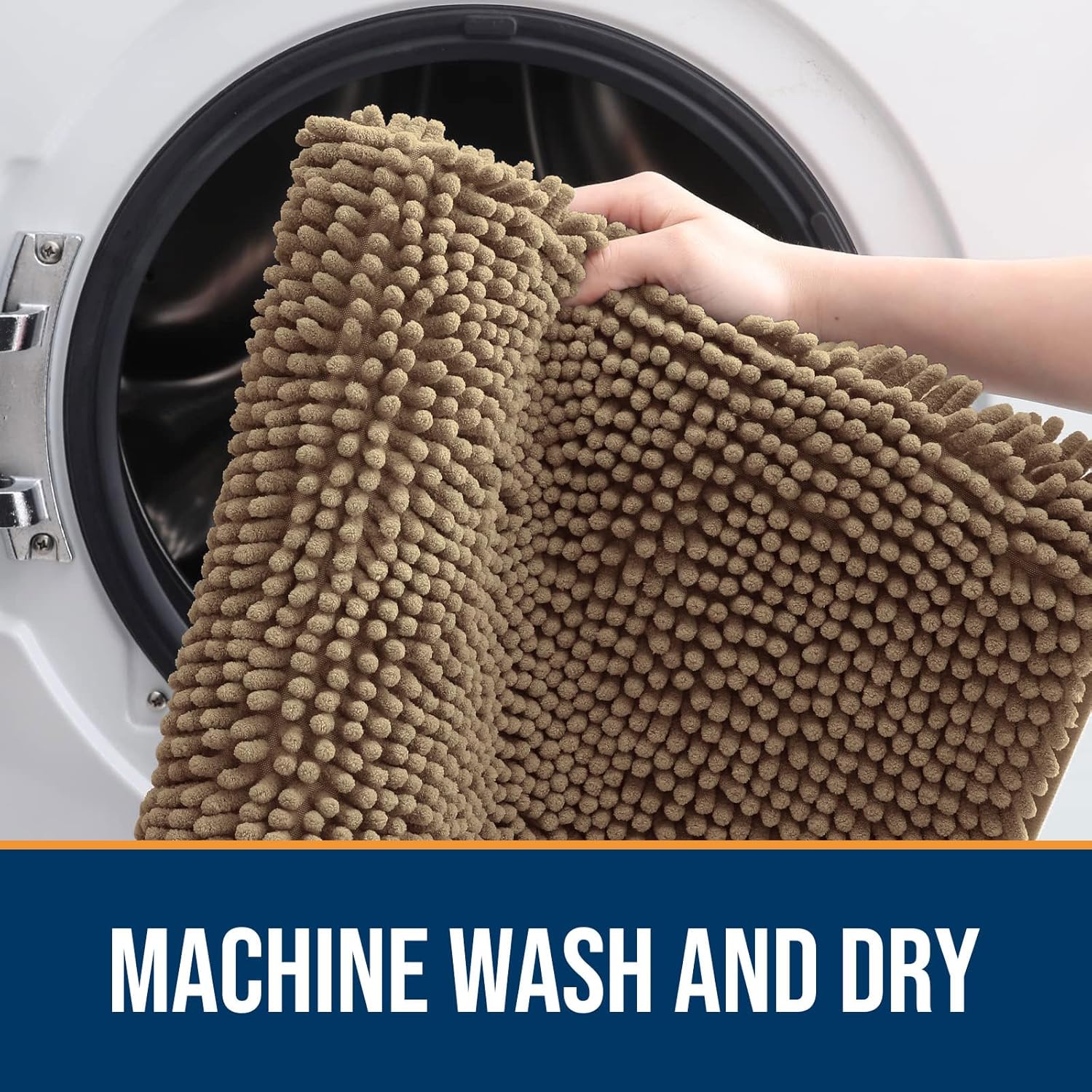 OLANLY Dog Door Mat for Muddy Paws 44x24, Absorbs Moisture and Dirt, Absorbent Non-Slip Washable Doormat, Quick Dry Chenille Mud Mat for Dogs, Entry Indoor Entryway Carpet for Inside Floor, Tan