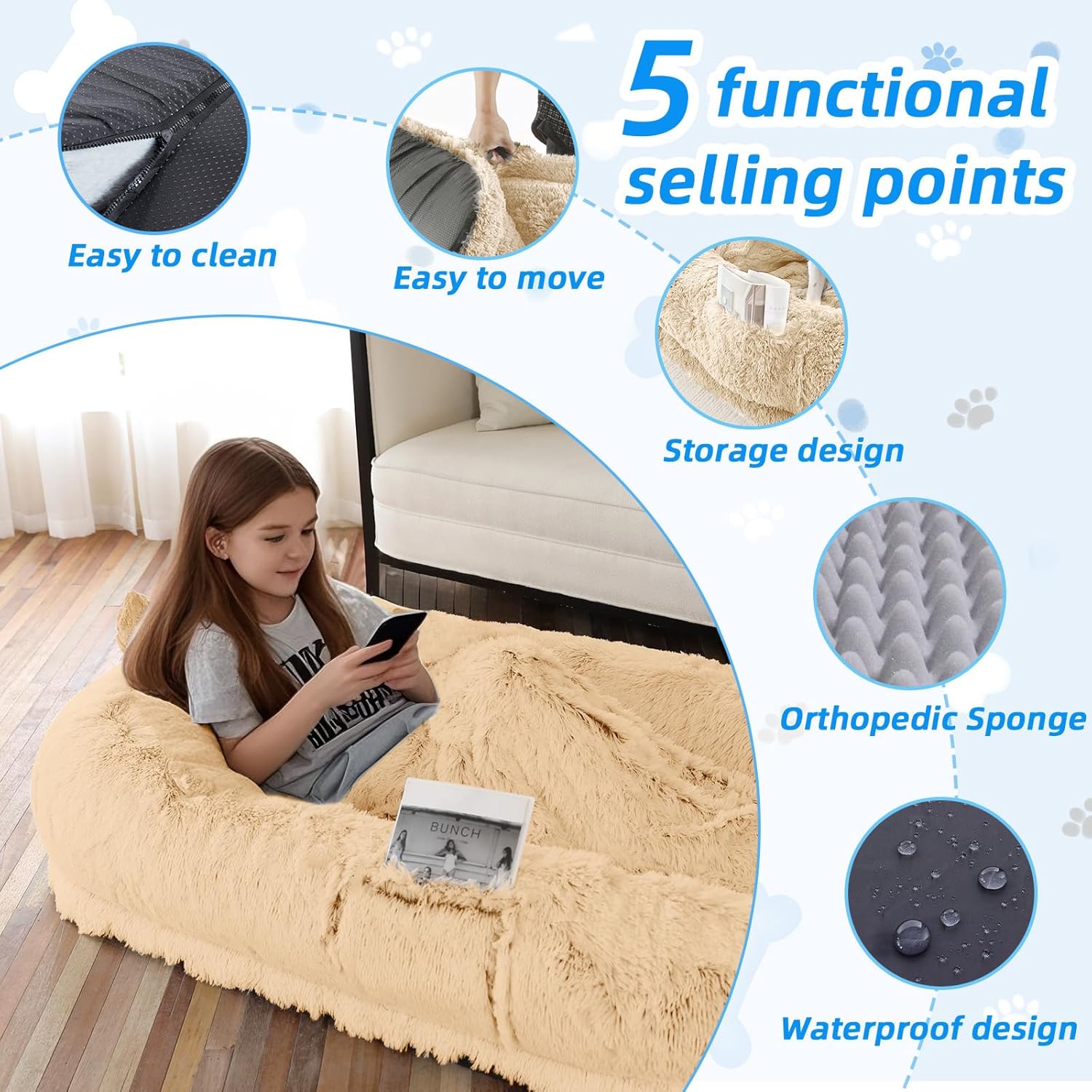 • Wash & Care: human dog bed for peoples size just needs to open the zipper, take out the filler, and put the bed cover into the washing machine for low-temperature cleaning. Please avoid using high-temperature cleaning or drying, we recommend natural air drying it. If there are any questions, please contact us as soon as possible, and we will solve the problem the first time.