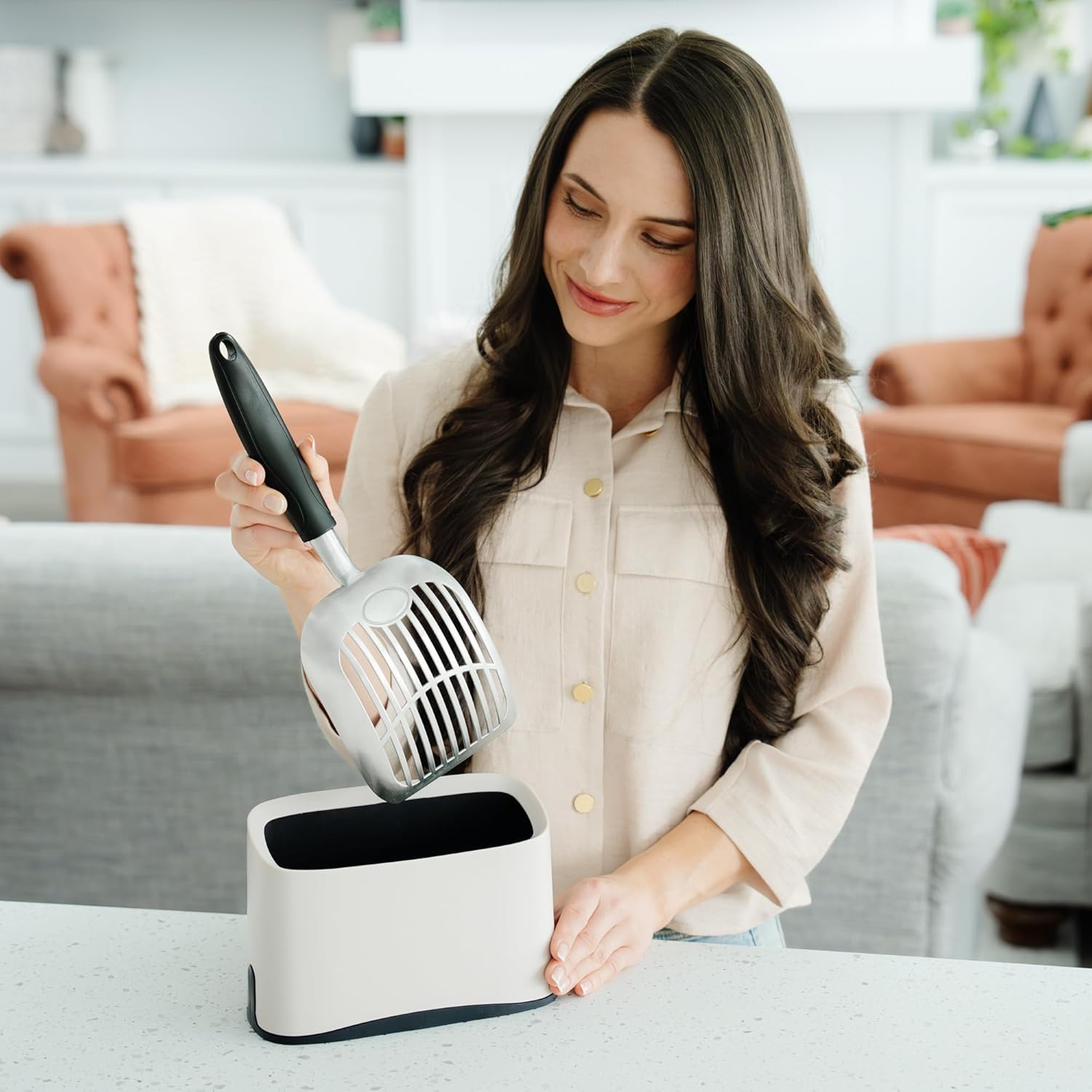 • [ERGONOMIC DESIGN MAKES LIFE BETTER] With our kitty litter scooper, you'll be happier, your cat will appreciate the cleanliness, and air quality will be noticeably better; This metal sifter for cats is designed for you to focus more on the fun parts of pet parenting (like scoop poop). For dustless, heavy-duty cleaning, this is the best litter scoop to add to your cat supplies, especially for multi-cat scooping homes as it eliminates dust caused unnecessary shaking