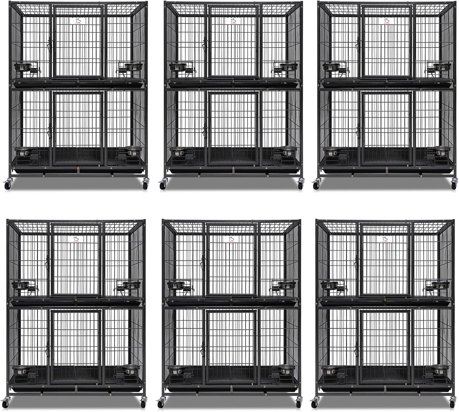 Homey Pet Two Tiers 37 Inch Dog Crate Cage Kennel with Feeding Door and Bowls, Lockable Wheels and Removable Tray, Escape Proof Metal Wire Heavy Duty Dog Crates for Medium/Small Sized Dogs (6 Pack)