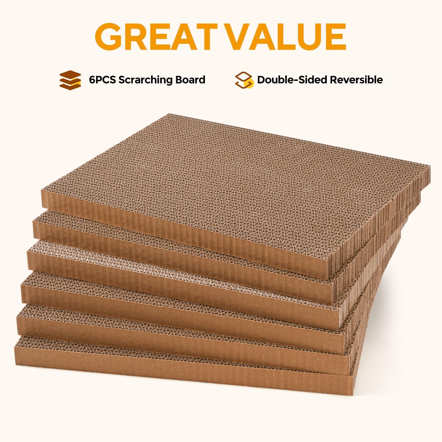 • 【Great Value】 The cat scratching box is designed for durability, and its 6pcs cat scratching boards are reversible, making the scratching life last longer than most others and offering better value through extended use. Infused with catnip which can attracts your feline friends to the scratcher, encouraging lasting enjoyment. Best value for your money.