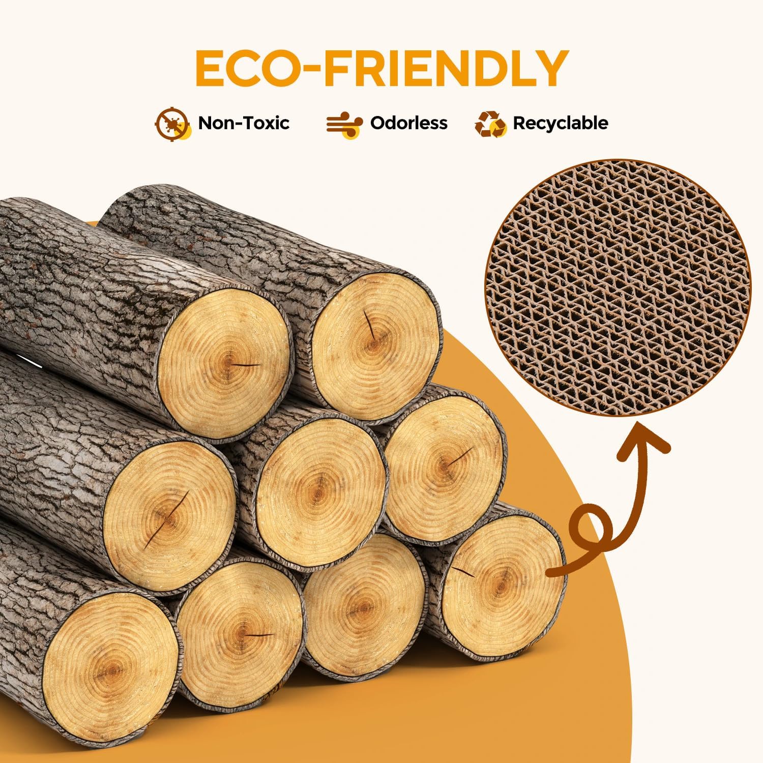• 【High-quality & Eco Friendly】 The cardboard cat scratcher is made with high-density and abrasion-resistant corrugated paper, which is tough enough to satisfy your cat’s natural scratching instincts while protecting furniture from damage. The 100% Eco-Friendly and non-toxic materials also ensuring safe paws and worry-free play.