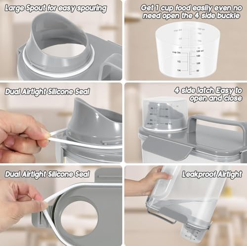 • WHAT YOU GET ? :The small dog food bin comes with a 1-pack airtight pet food storage container with a clear measuring cup and an upgraded large spout for easy pouring of pet food at any time. This dog food storage containers can be a gift The perfect gift for any home.