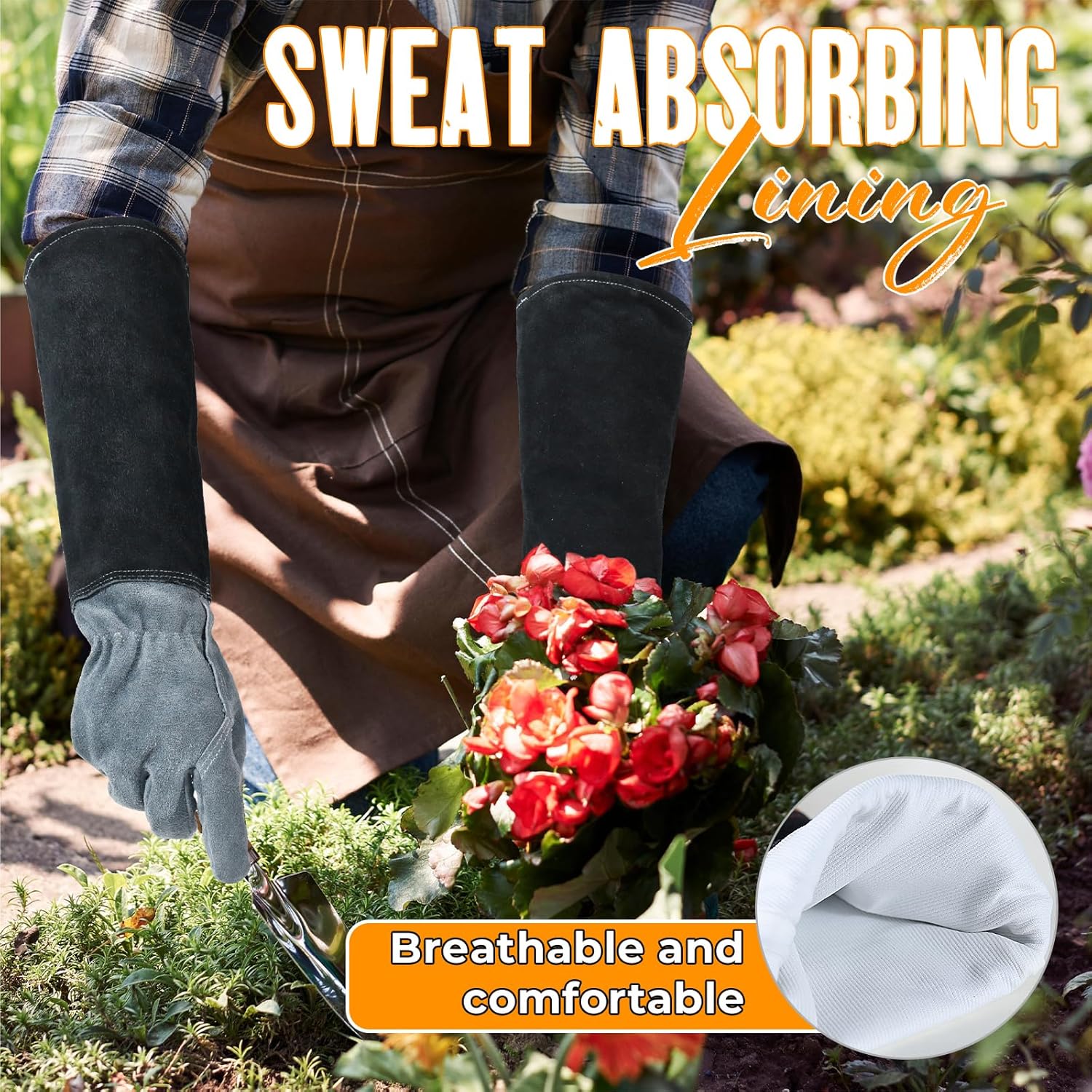 • Premium Cowhide Leather: Made from high-quality cowhide split leather, these heavy-duty gardening gloves provide exceptional toughness and natural resistance to abrasion and moisture. The reinforced stitching provides comfort and improved dexterity