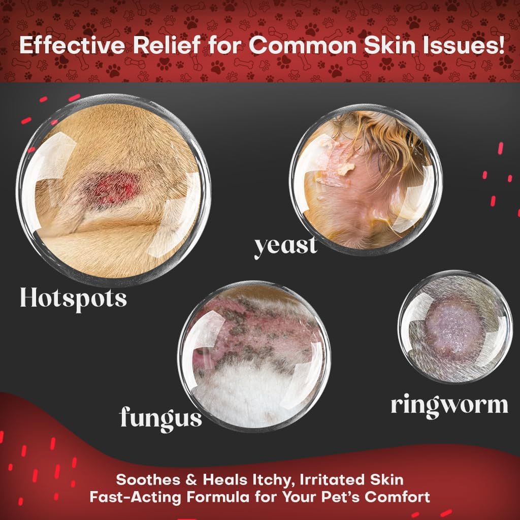 • VET-STRENGTH ANTIFUNGAL & ANTIBACTERIAL FORMULA – Helps fight yeast, ringworm, hot spots, and skin infections, delivering visible relief for itching, redness, and odor.