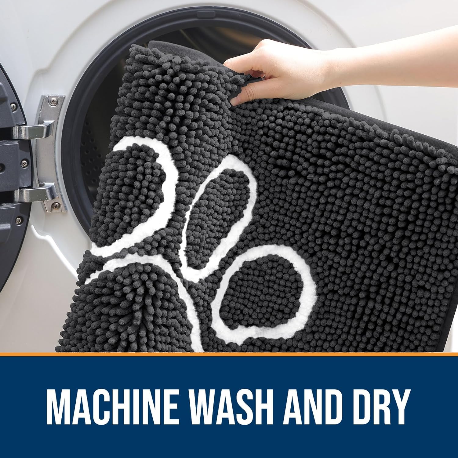 OLANLY Door Mat for Muddy Dog Paws 59x24, Ultra Absorbent Chenille Mud Doormat with Paw Print Design, Non-Slip Washable Doormat for Indoor Entryway, Quick-Dry Pet Bed Mats for Dirty Dogs, Dark Grey