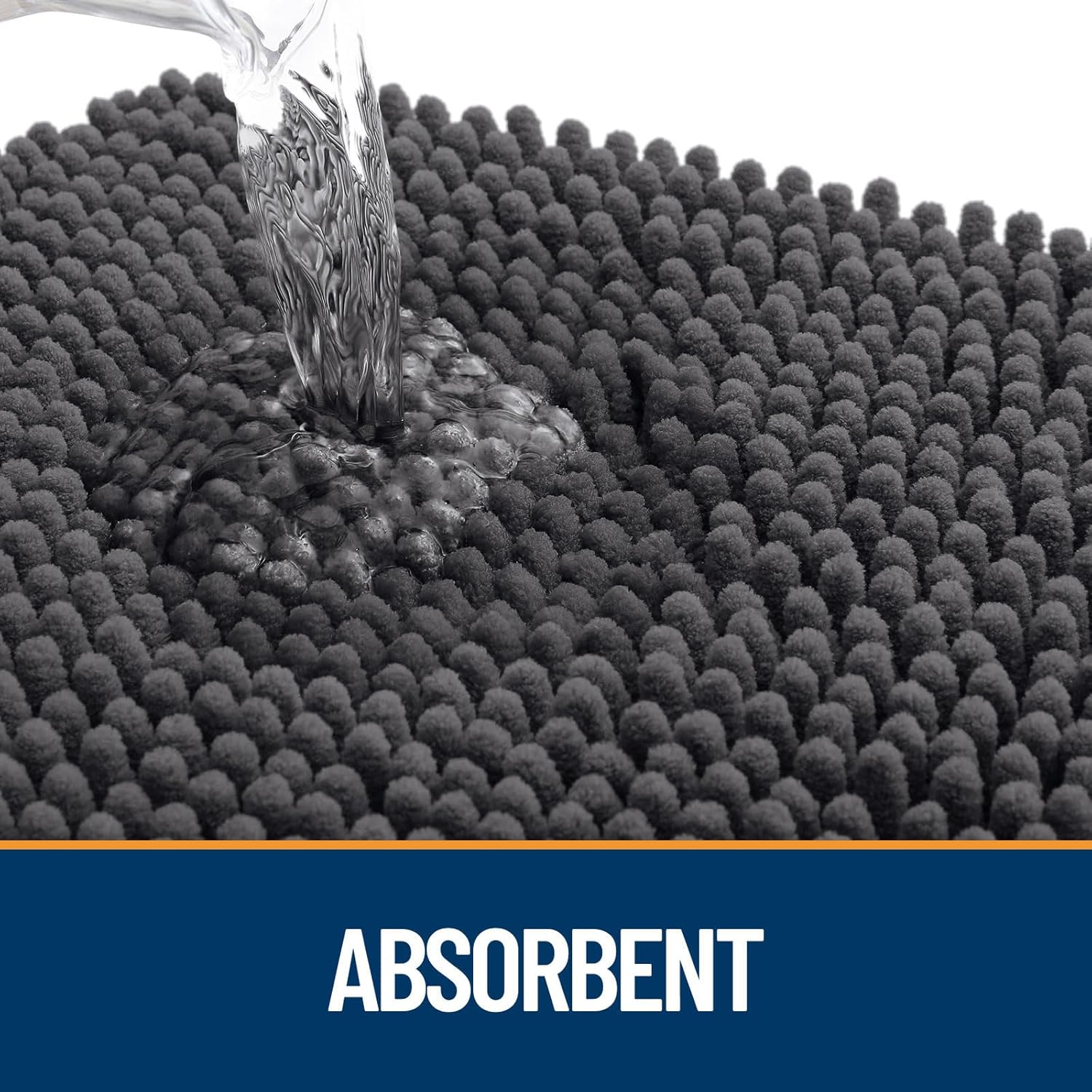OLANLY Door Mat for Muddy Dog Paws 40x32, Ultra Absorbent Chenille Mud Doormat with Paw Print Design, Non-Slip Washable Doormat for Indoor Entryway, Quick-Dry Pet Bed Mats for Dirty Dogs, Dark Grey