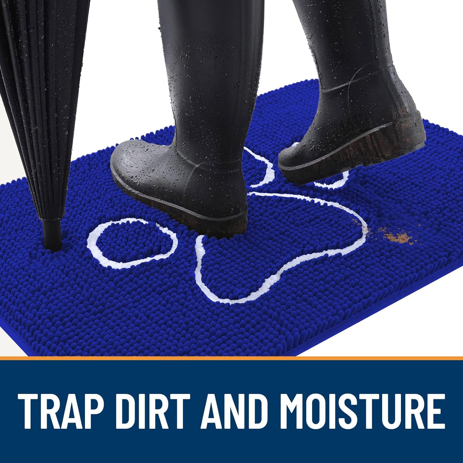 OLANLY Door Mat for Muddy Dog Paws 30x20, Ultra Absorbent Chenille Mud Doormat with Paw Print Design, Non-Slip Washable Doormat for Indoor Entryway, Quick-Dry Pet Bed Mats for Dirty Dogs, Royal Blue