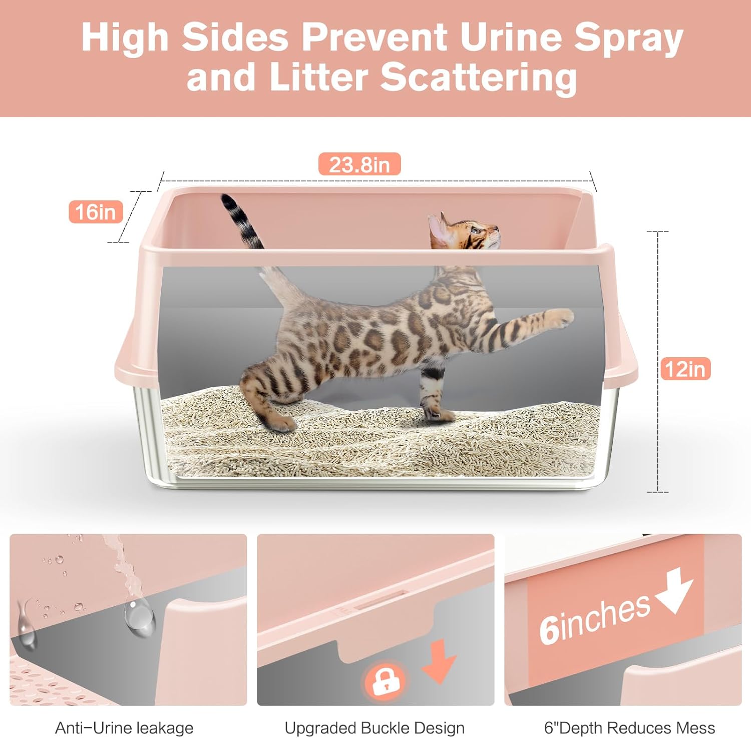 - 【Extra Large Litter Boxes For Big Cats】: ICYAIR stainless steel litter box 2pack each is sized 23.8"L X 16"W X 12"H providing ample space for big cats to move comfortably. 2pack stainless steel litter boxes xl are perfect fit for 2 cats or multi-cat households, ensuring each of your feline friend has their space without feeling cramped. Each litter box's capacity to hold up to 20L of litter significantly reduces the frequency of cleanups.