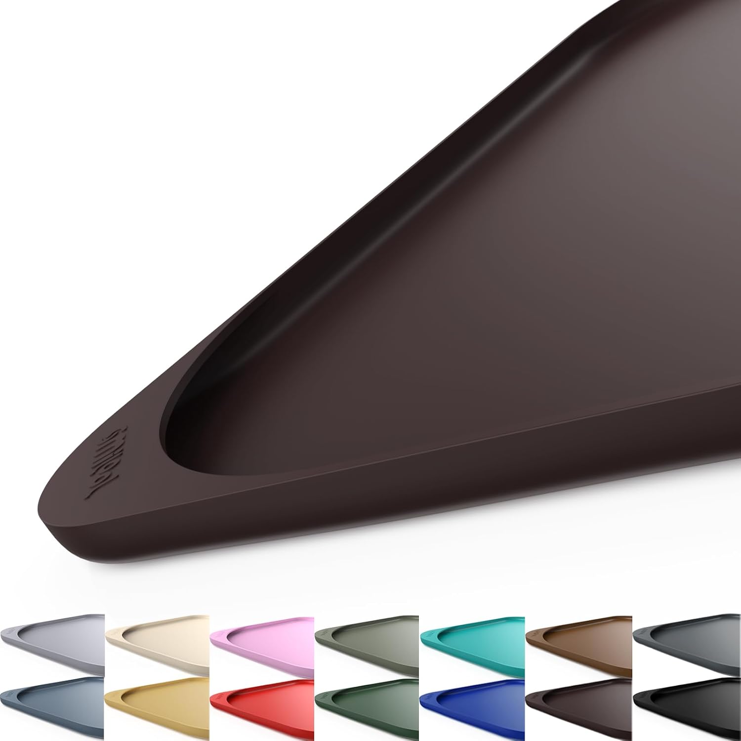 Silicone Pet Feeding Mat with Raised Edge & Residue Collection Pocket for Food and Water, Dog Bowl Mats, Cat Bowls Placemat with High Lip for Floor Waterproof, 24 x 16 x 0.8 Dark Brown