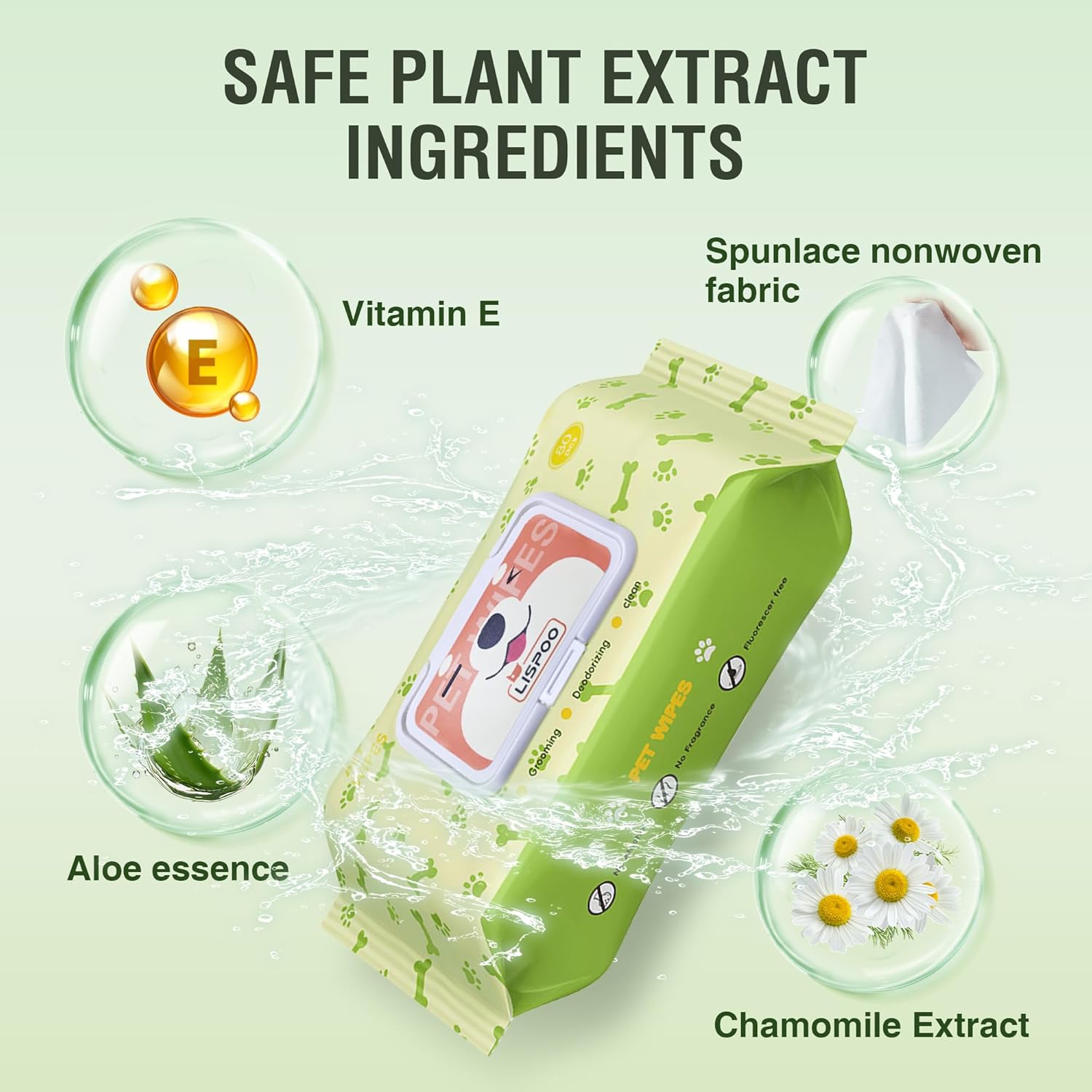 • Widely applicable, universal for all dogs and cats: LISPOO pet wipes are crafted with a mild, plant-based formula to safely remove dirt, odors, and stains from your pets paws and butt. Hypoallergenic and non-irritating dog wipes and cat wipes are suitable for daily dog and cat grooming care or cleaning after going out. Natural ingredients protect the delicate skin of pets.