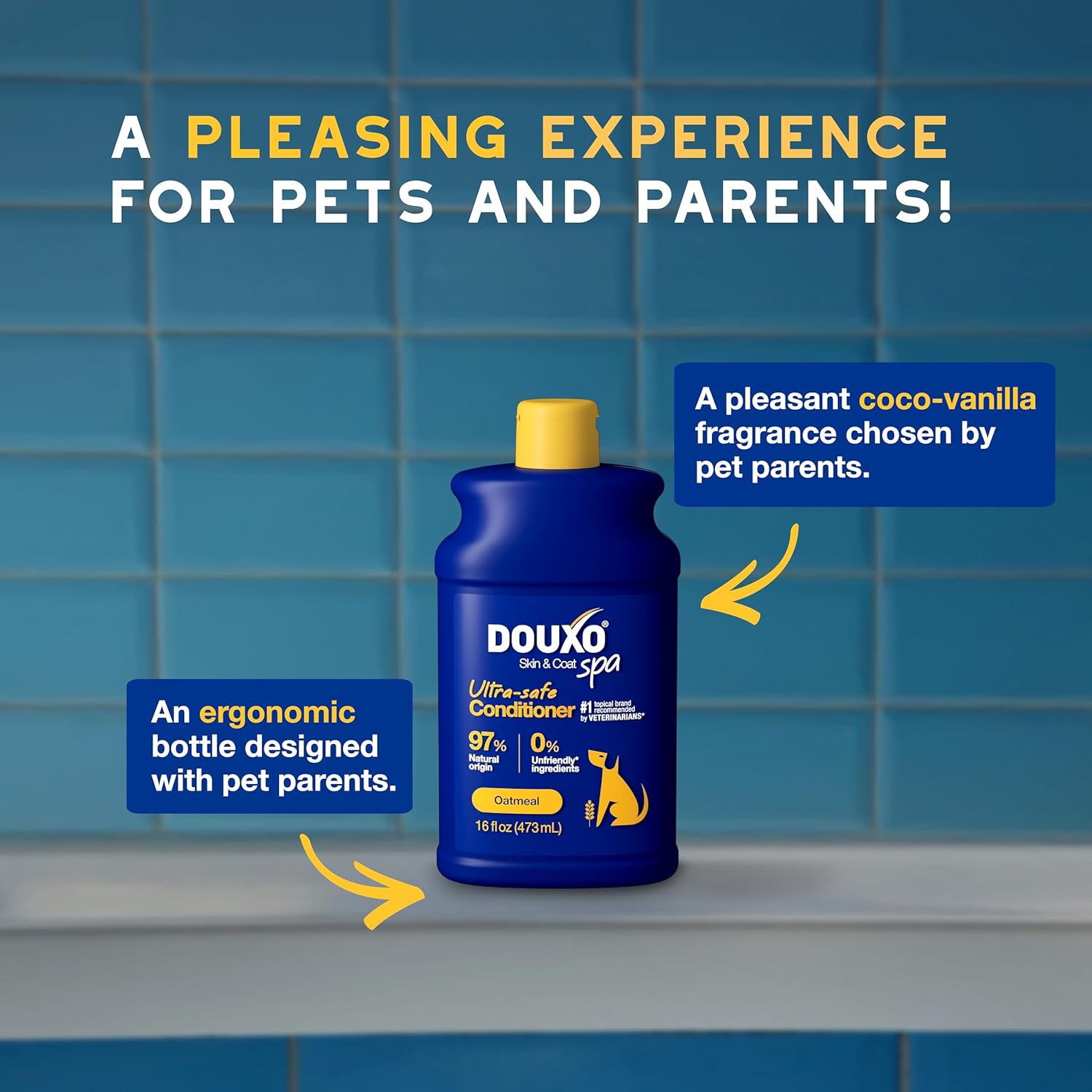 • ULTRA-SAFE HYPOALLERGENIC SKIN-FRIENDLY CLEANSING: DOUXO Skin & Coat SPA oatmeal conditioner gently moisturizes and nourishes your dogs skin and detangles the coat, leaving it soft, silky and radiant after every use.