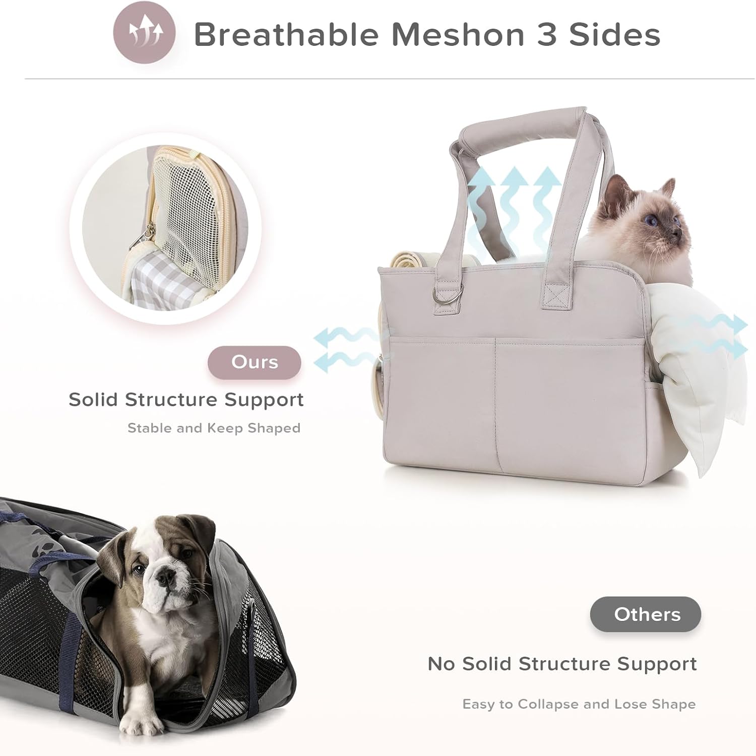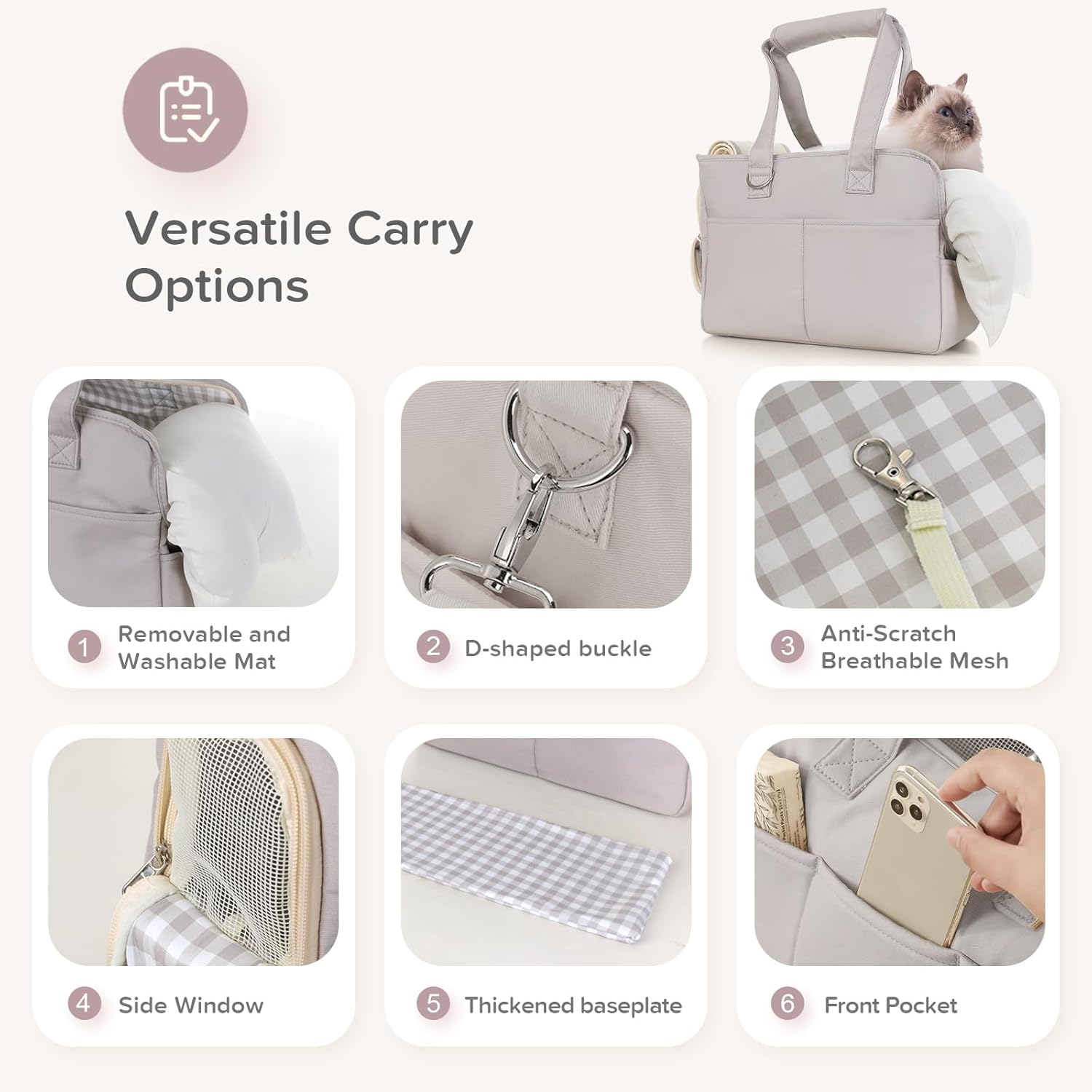 • Easy to Carry & Clean: This dog carrier for small dogs weighs only 1.4 pounds (0.63kg) and features a reinforced handle for reduced strain, ensuring effortless travel. The soft and cozy pet carrier is fully detachable for easy cleaning, simply washable with water, maintaining its cleanliness and freshness with ease.