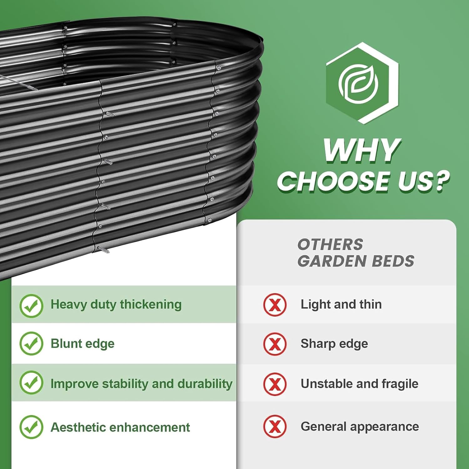 • Upgraded quality and structure: raised garden beds outdoor are made of Q195 galvanized metal sheet, double-layer anti-corrosion galvanizing and oval structure design, which is more beautiful, can withstand greater pressure at the interface, is not easy to loose, and the interface will not Deformed and can be reused for many years.