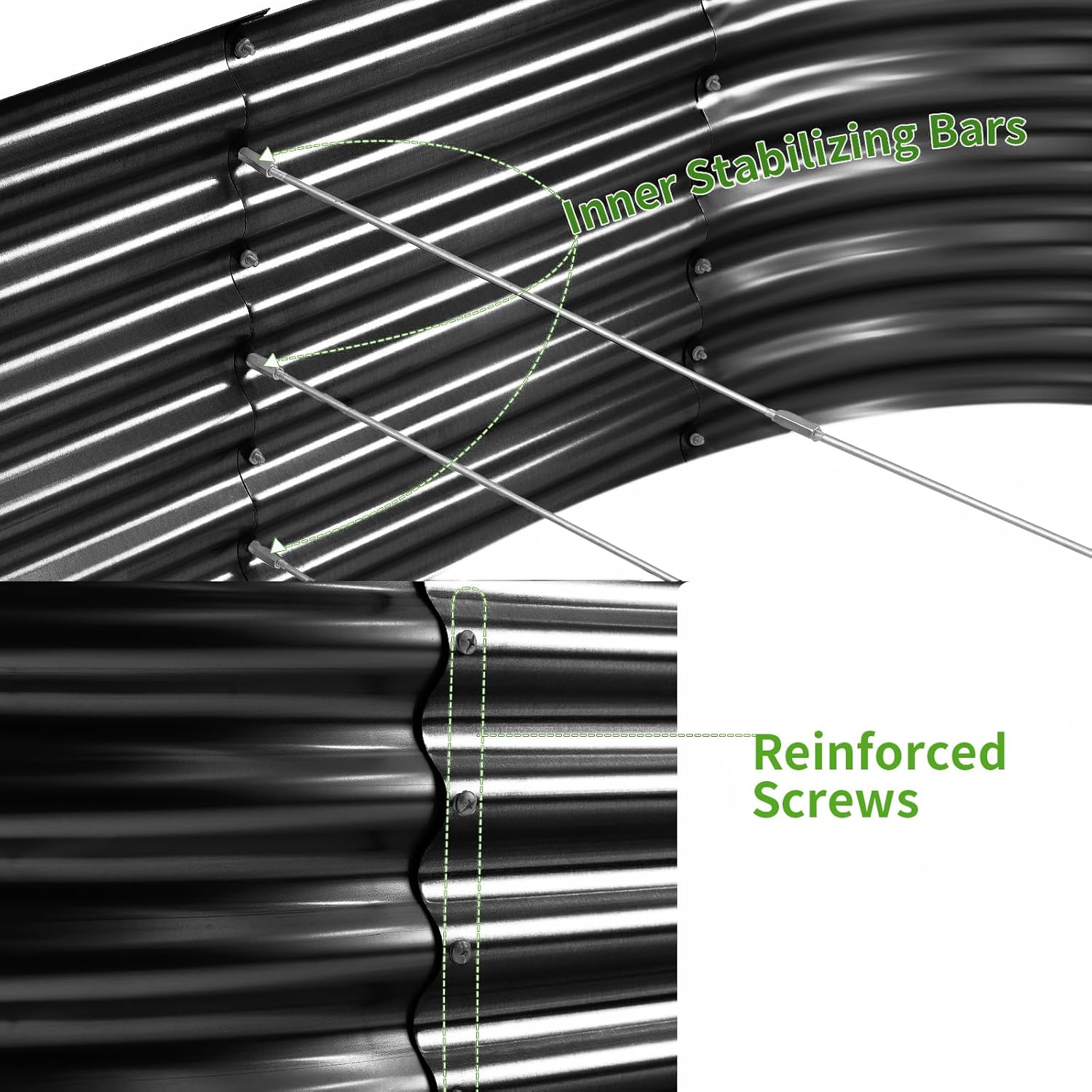 Land Guard 6x3x1.5ft Galvanized Raised Garden Bed Kit, Metal Planter Boxes Outdoor, Oval Metal Raised Garden Bed for Vegetables, Flowers (Dark Gray)