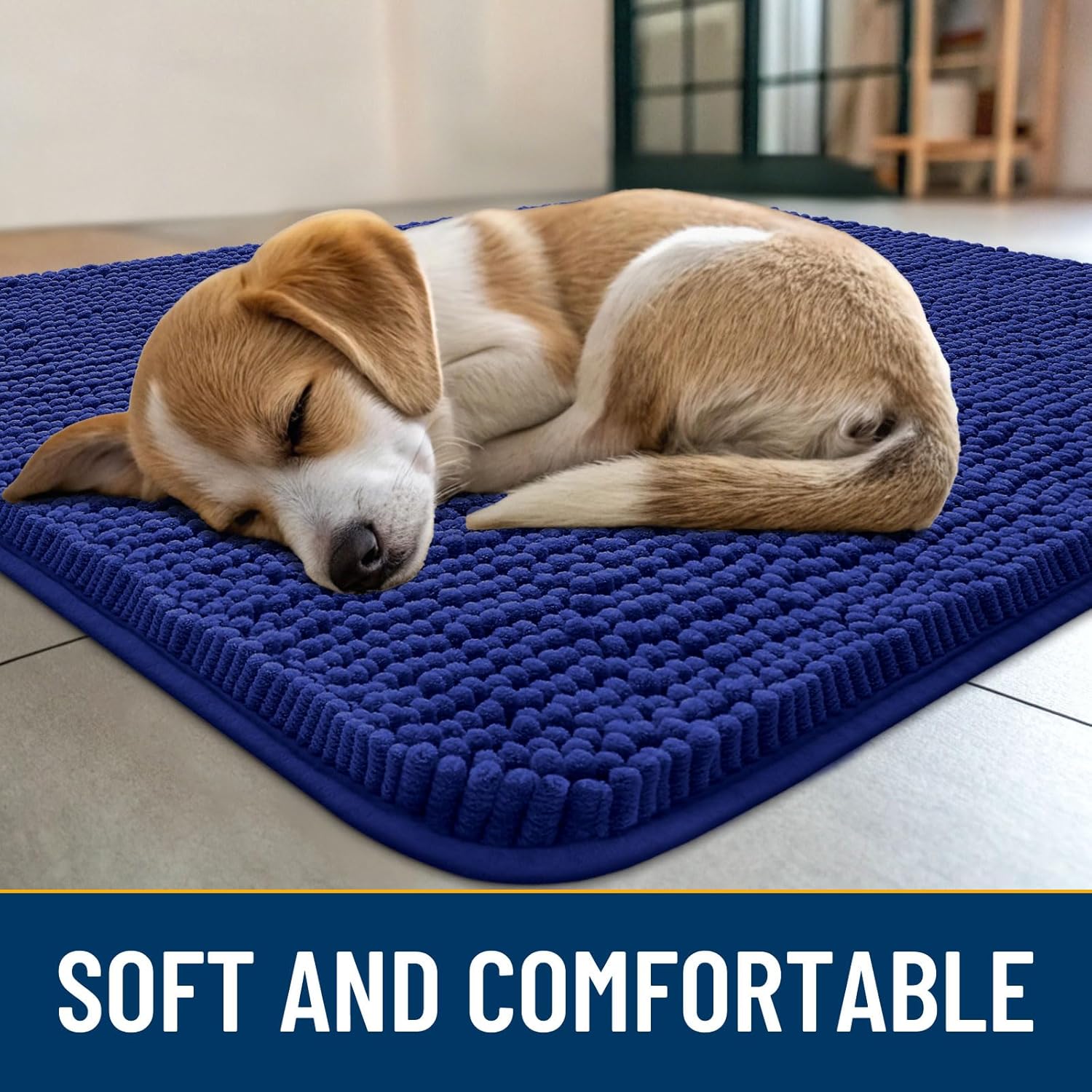 Smiry Dog Door Mat for Muddy Paws 30x20, Absorbs Moisture and Dirt Doormat, Non-Slip Washable Quick Dry Chenille Front Door Mat Indoor Entrance, Entryway Carpet for Inside Floor, Navy Blue