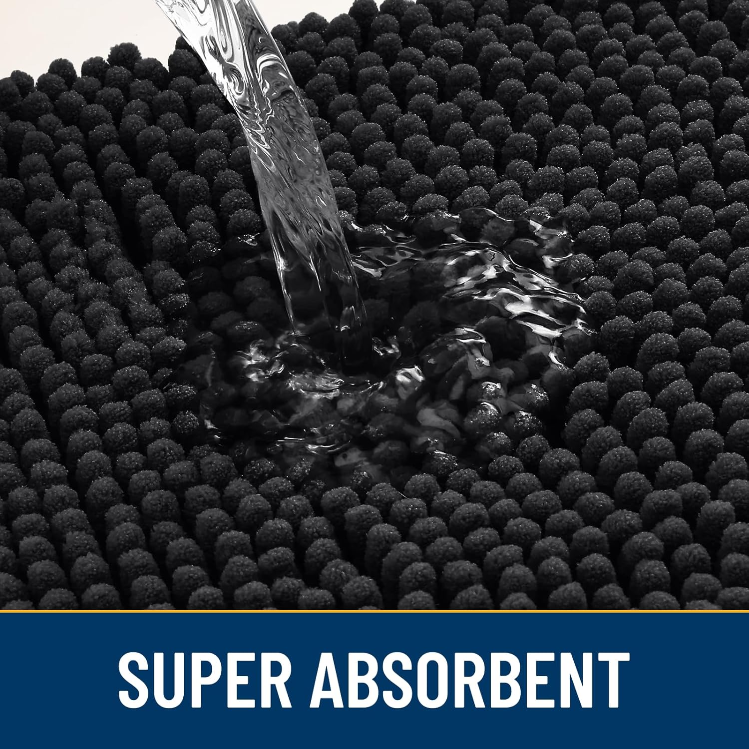 Smiry Dog Door Mat for Muddy Paws 59x35, Absorbs Moisture and Dirt Doormat, Non-Slip Washable Quick Dry Chenille Front Door Mat Indoor Entrance, Entryway Carpet for Inside Floor, Black