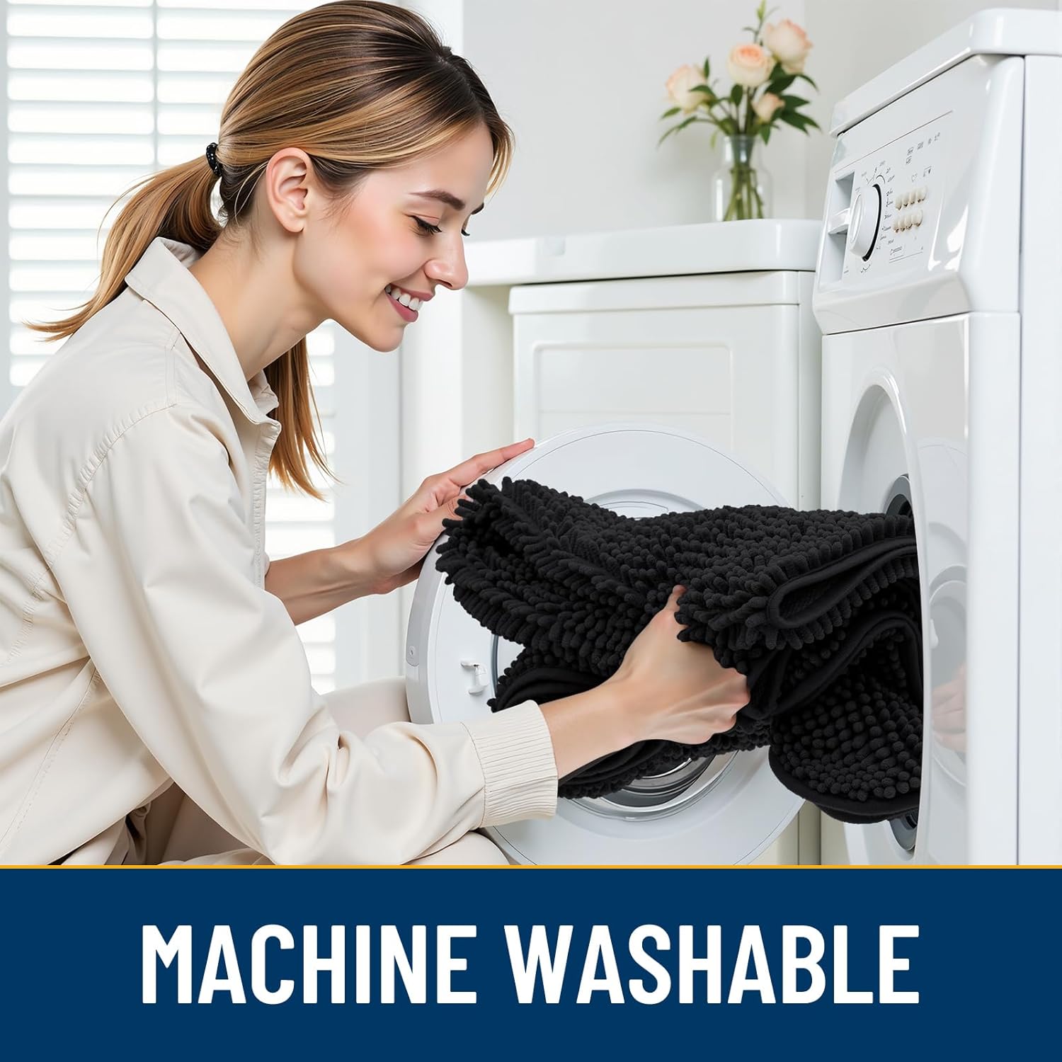 Smiry Dog Door Mat for Muddy Paws 71x46, Absorbs Moisture and Dirt Doormat, Non-Slip Washable Quick Dry Chenille Front Door Mat Indoor Entrance, Entryway Carpet for Inside Floor, Black