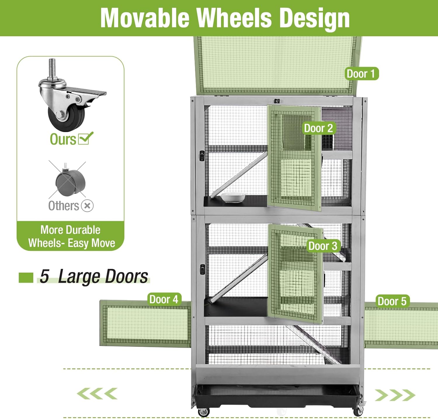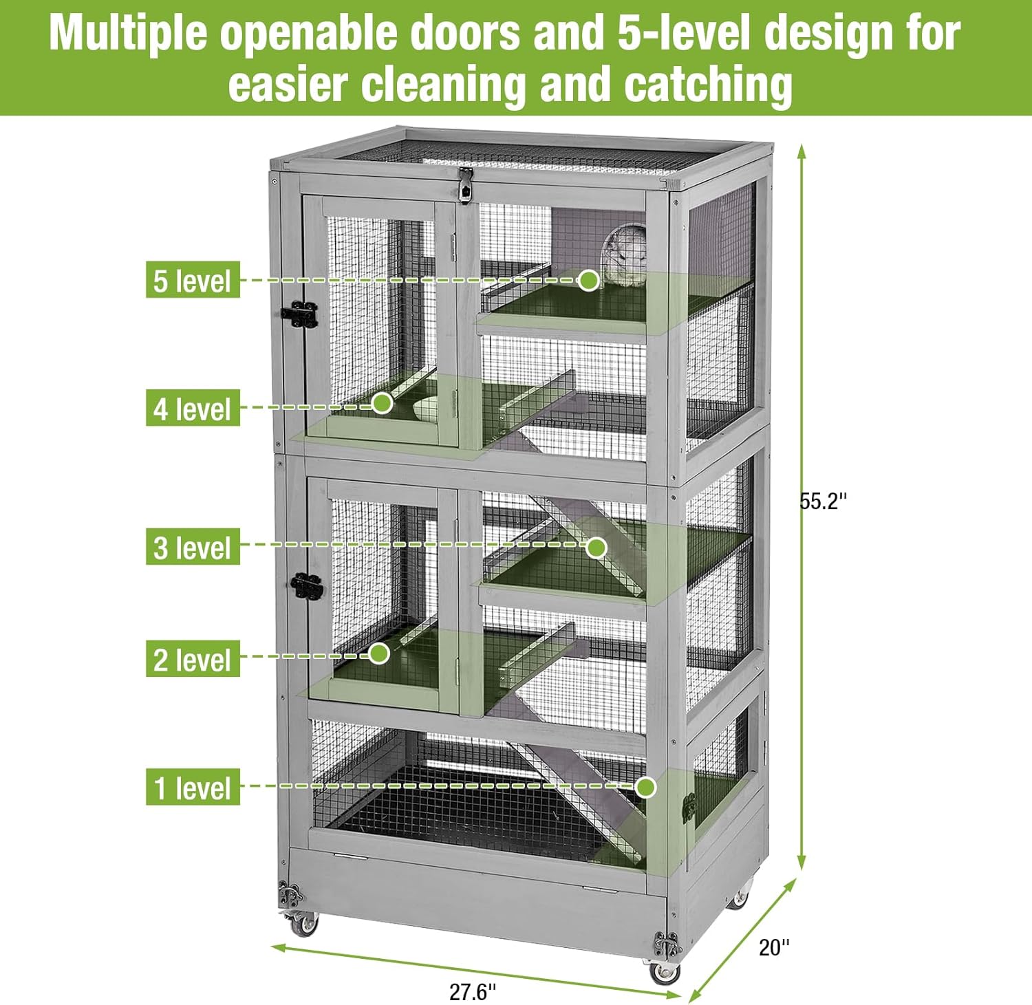 • Easy Access & Maintenance:featuring multiple large doors and a removable bottom tray, cleaning is a breeze, and accessing your ferret for playtime is effortless.
