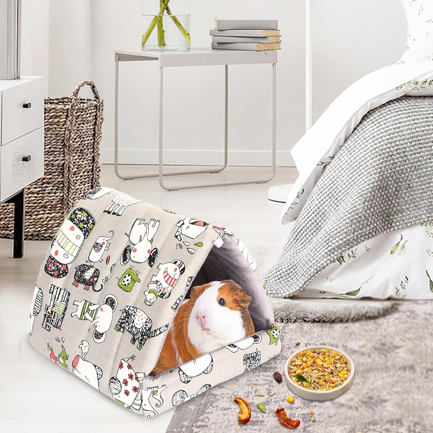 • Warm and Comfortable: The Guinea pig bed house is equipped with a detachable pee pad inside, and the non-slip bottom ensures hamster nest stays in place. With ultra soft fabric, your furry children will feel comfortable and warm in the small Guinea pig bed. Suitable for small animals such as hamsters, rats, chinchillas, ferrets, Guinea pigs, dwarf rabbits, etc