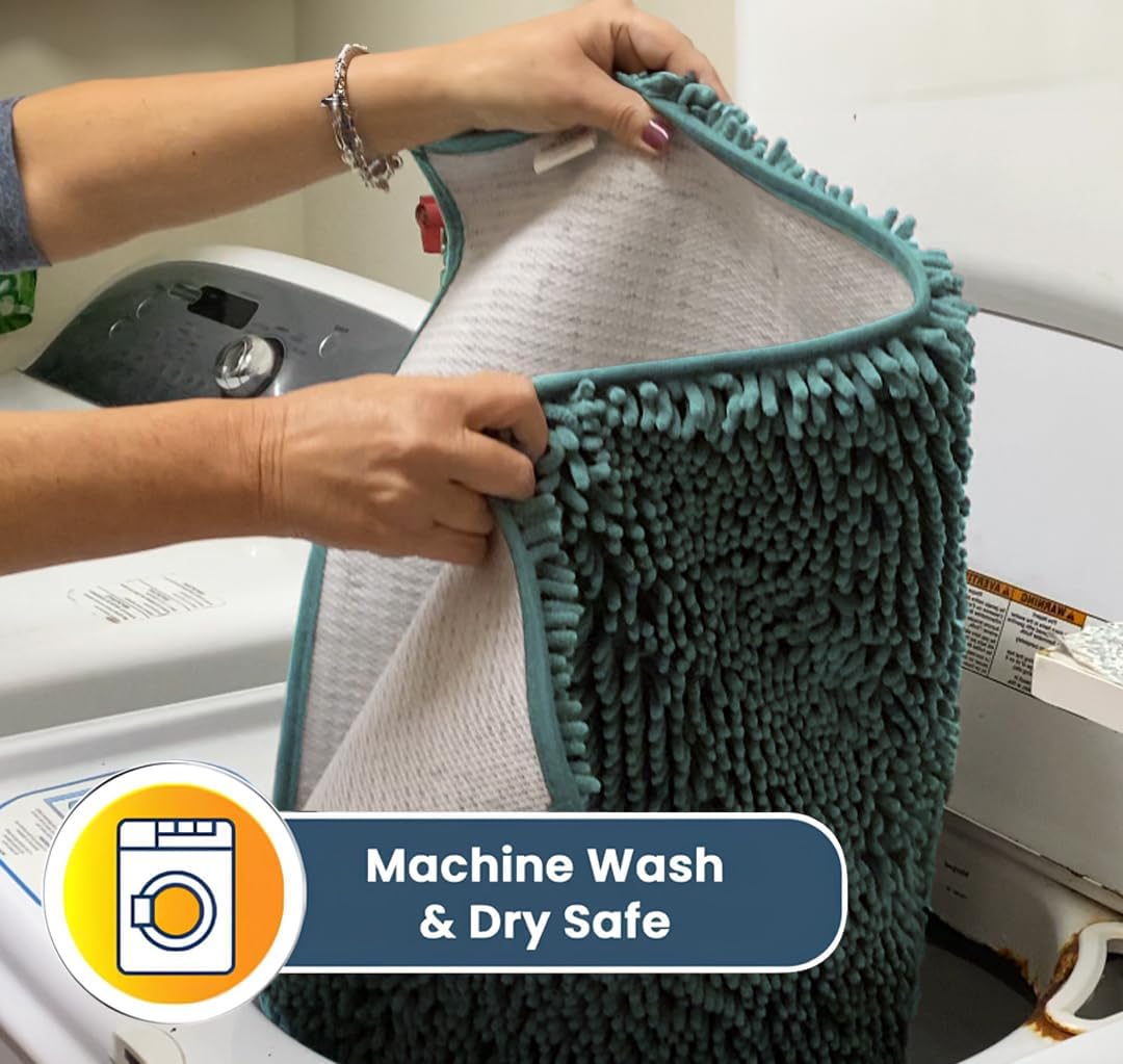 • [ ULTRA MOISTURE ABSORBENT ] Designed with a thick layer of plush 1-inch chenille that soaks up to 5X its weight for maximum water absorption ideal for trapping liquid from shower floors and wet spills from pets.