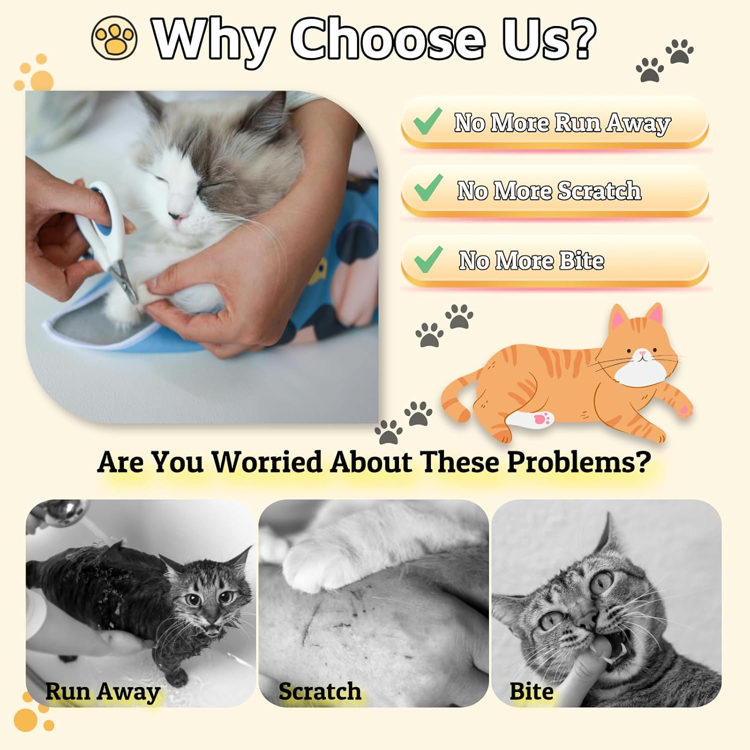 • 【Multifunctional Cat Wrap】Whether you need to trim nails, clean ears, brush teeth or administer medication, administering injections, and more, our cat swaddle wrap can meet your cat care needs. Its suitable size and lightweight design make it the best choice for daily cat care.